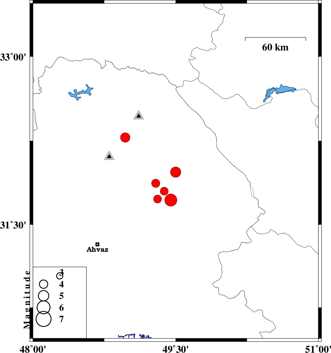 2019/07/08 07:00:32.6 11:30:32.6 31.7249.4510 Mb5.8 Khoozestan Province, 28 km South-East of Masjed Soleyman