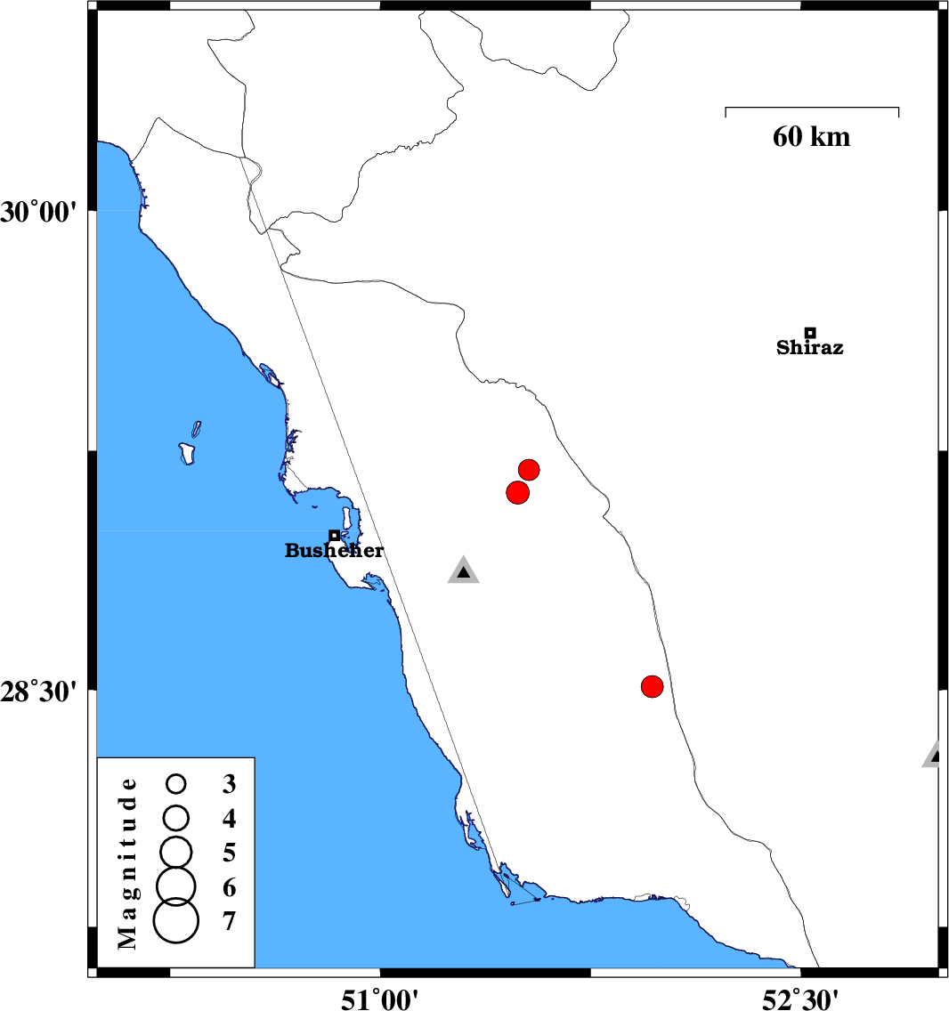 | 2019/07/06 | 12:27:40.5 | 16:57:40.5 | 28.51 | 51.97 | 18 | ML3.5 | Bushehr Province, 42 km South-West of Farashband |