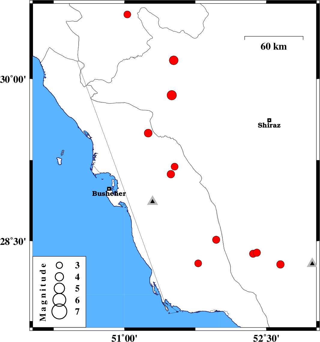 2019/07/06 12:27:40.5 16:57:40.5 28.5151.9718 ML3.5 Bushehr Province, 42 km South-West of Farashband