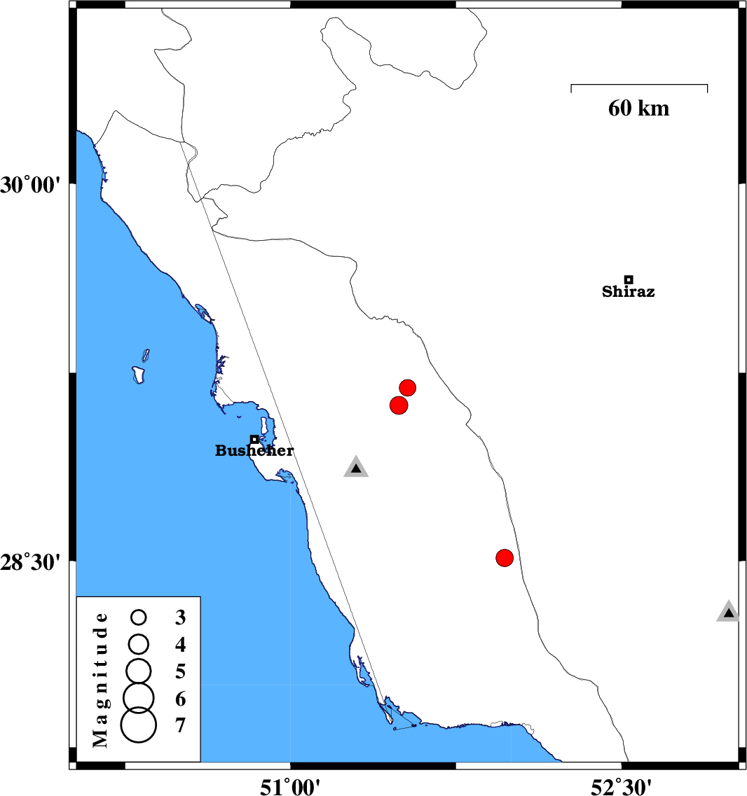 | 2019/07/06 | 12:27:40.5 | 16:57:40.5 | 28.51 | 51.97 | 18 | ML3.5 | Bushehr Province, 42 km South-West of Farashband |
