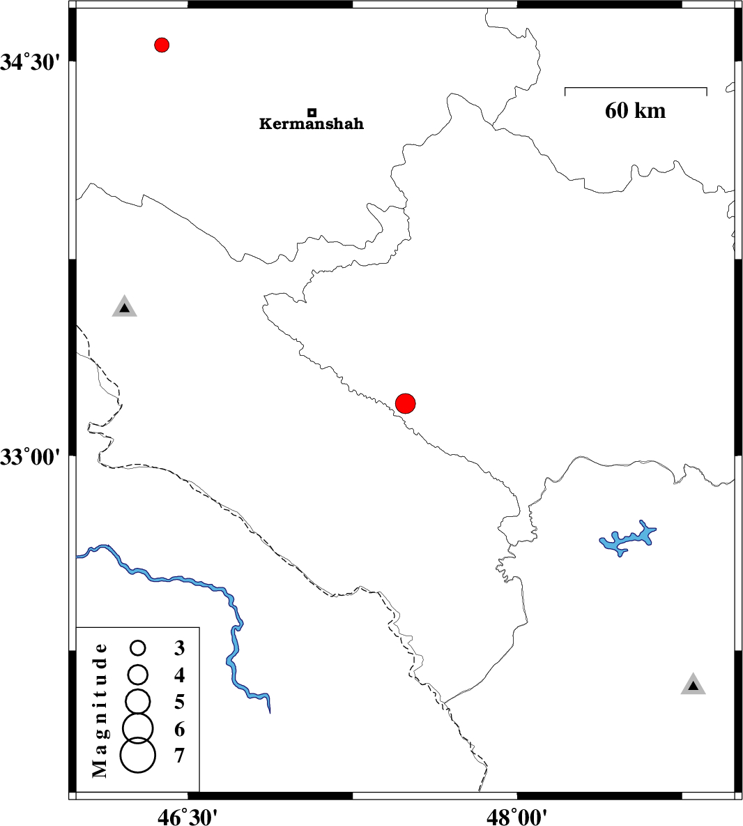 | 2019/09/24 | 01:12:33.3 | 04:42:33.3 | 34.56 | 46.38 | 14 | ML2.9 | Kermanshah Province, 30 km South of Javanrud |