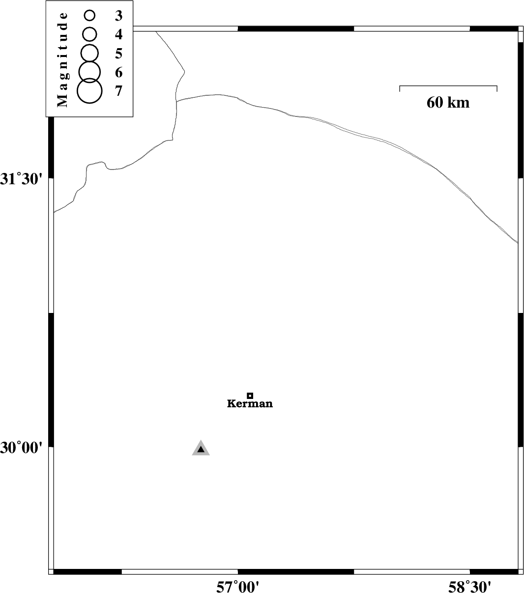 | 2019/10/02 | 05:21:08.5 | 08:51:08.5 | 30.81 | 57.31 | 12 | ML3.2 | Kerman Province, 71 km -East of Zarand | ||