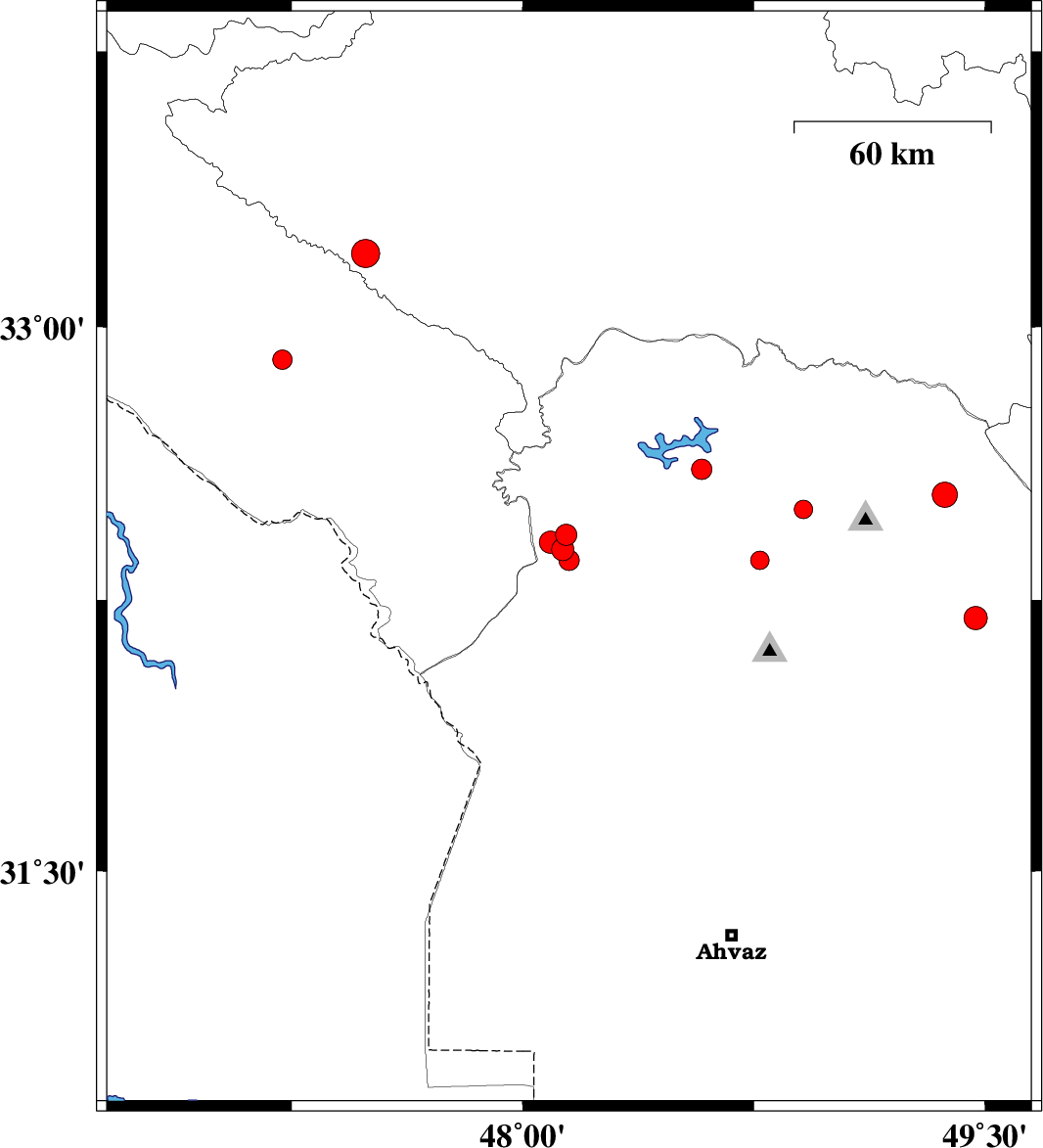 2019/09/29 11:19:23.9 14:49:23.9 32.6148.5814 ML3 Khoozestan Province, 27 km North-East of Andimeshk