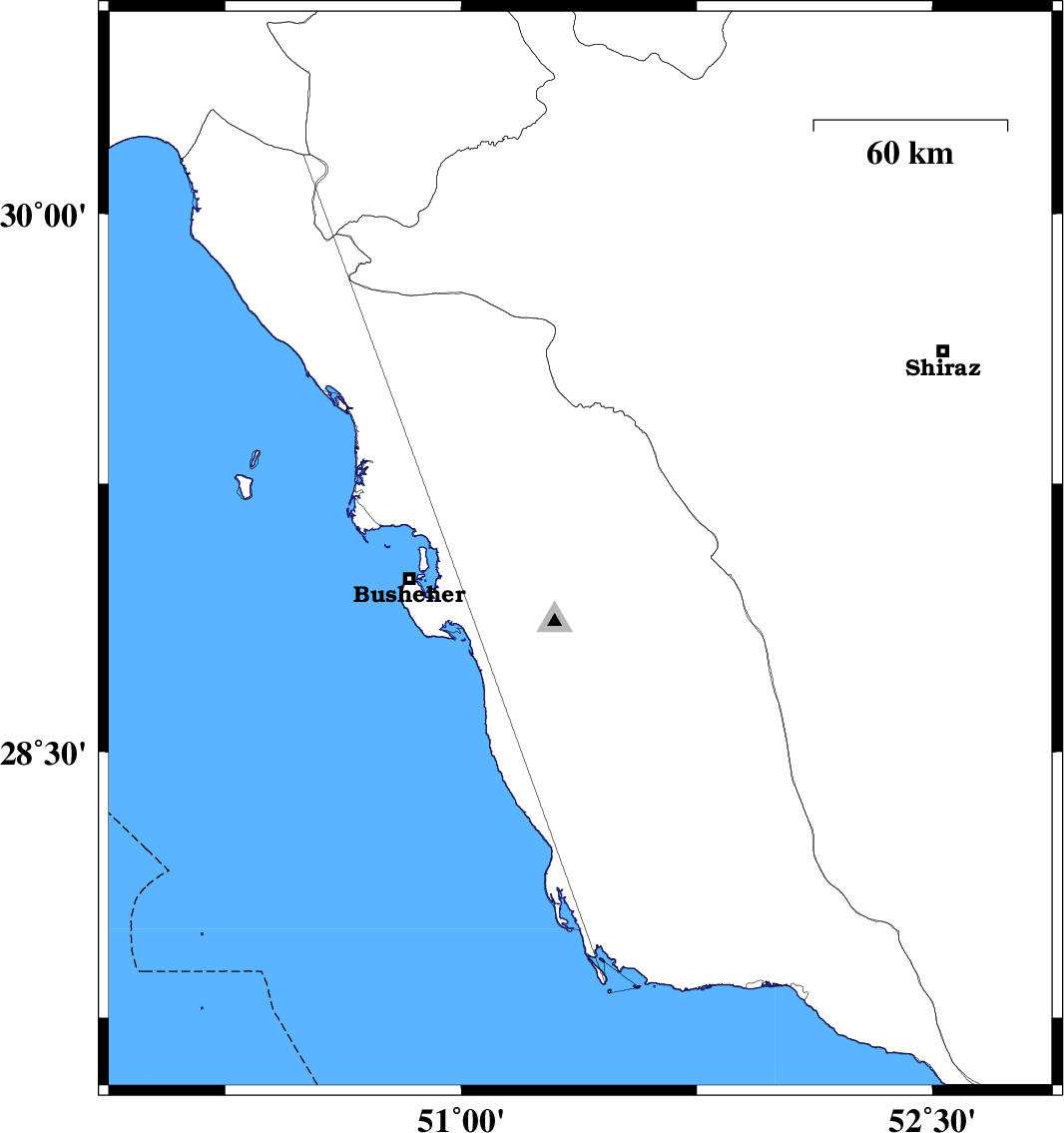 2019/10/05 11:49:59.6 15:19:59.6 29.7450.6814 ML3 Bushehr Province, 24 km North-East of Bandar-e genaveh