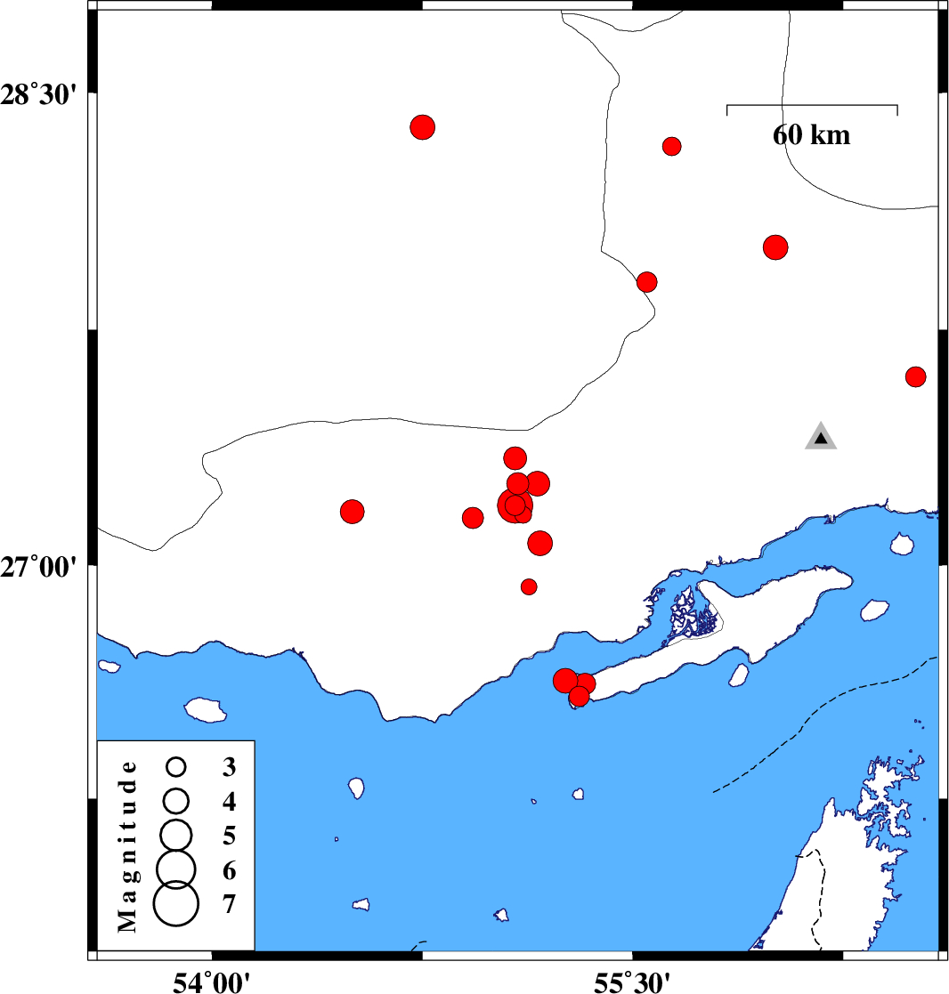 2019/10/18 04:09:38.8 07:39:38.8 26.6355.2614 ML4 Persian Gulf, 42 km North-East of Bandar-e lengeh