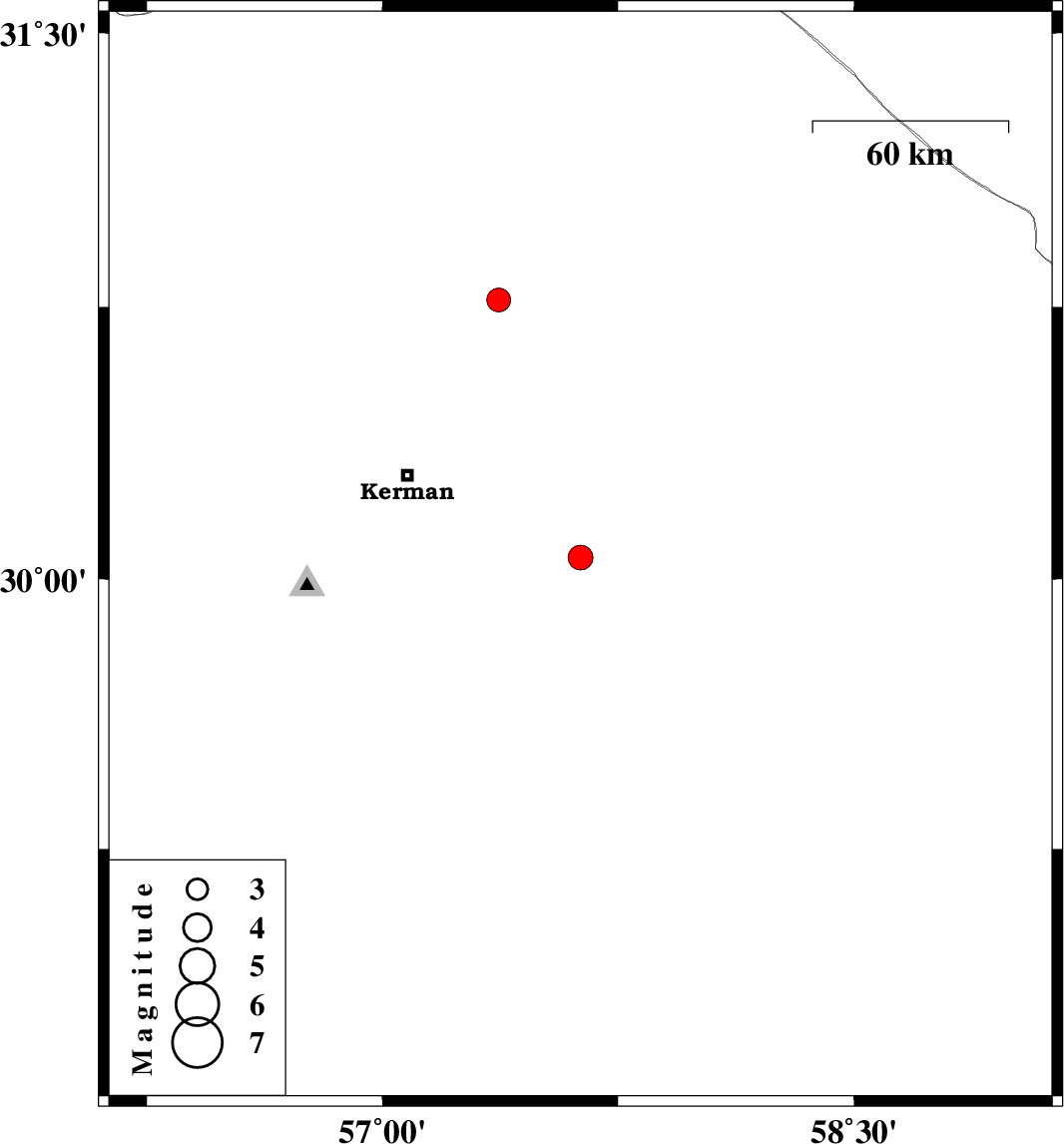 | 2019/10/28 | 11:06:15.8 | 14:36:15.8 | 30.06 | 57.63 | 14 | ML3.5 | Kerman Province, 59 km South-East of Kerman | ||