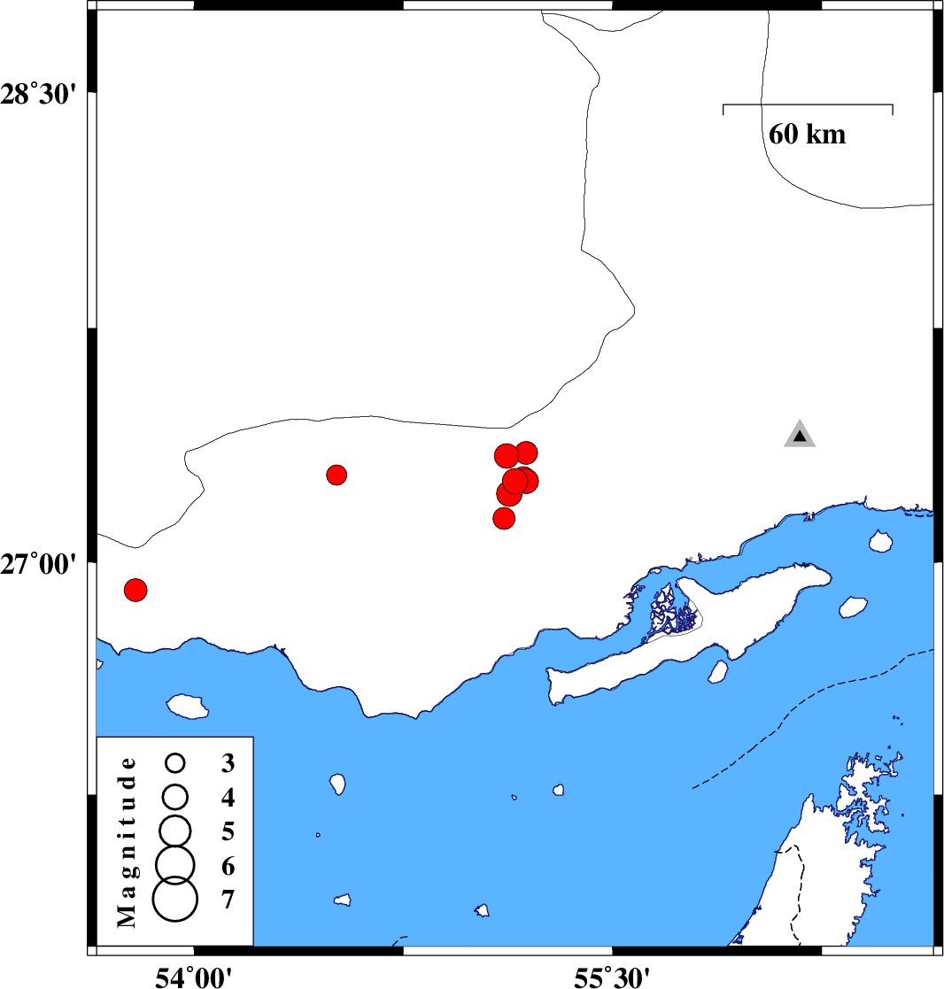 | Prel. Rep. | Date | Time(UTC) | Time(Local) | Lat. | Lon. | Depth | Mag. | Region | Waveform |