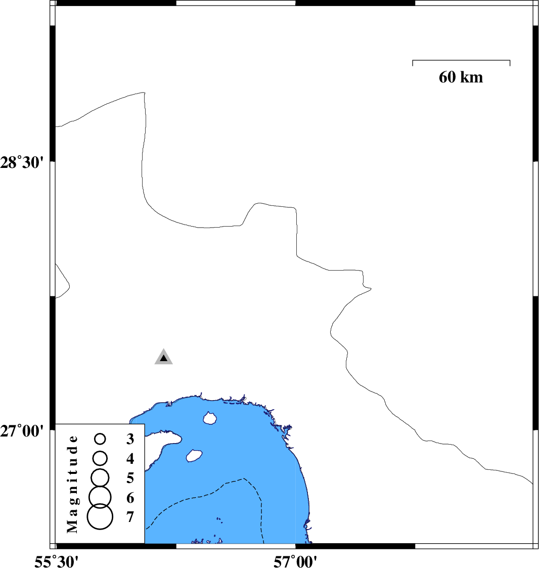 | 2019/10/27 | 16:01:31.2 | 19:31:31.2 | 27.86 | 56.99 | 14 | ML3.3 | Hormozgan Province, 54 km North-West of Dehbarez |
