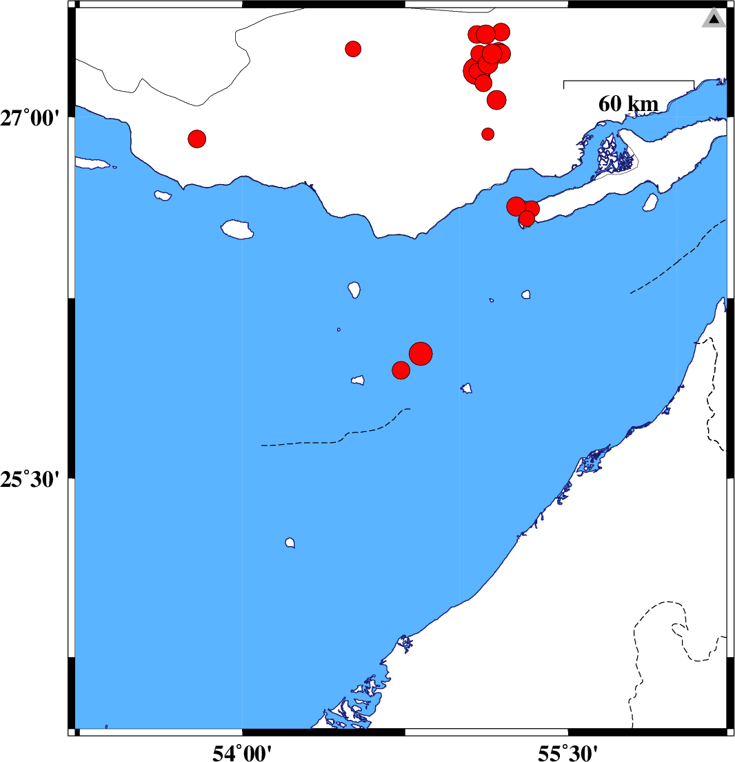 Persian Gulf, 46 km -East of Bandar-e lengeh | |