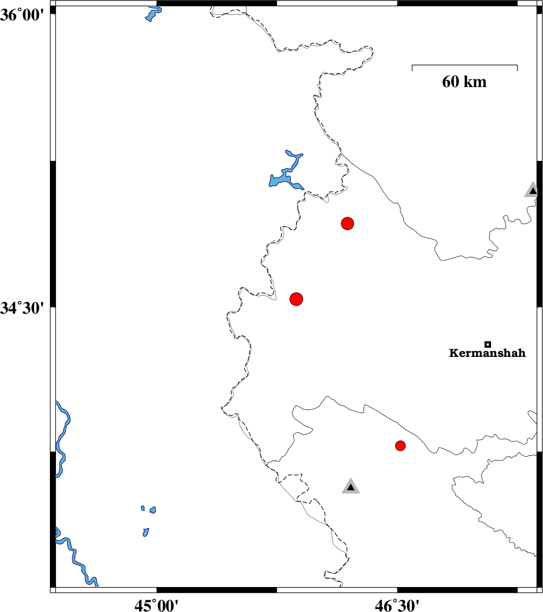 | 2019/11/08 | 18:22:32.2 | 21:52:32.2 | 34.54 | 45.87 | 14 | ML3.7 | Kermanshah Province, 9 km of Sar-e pol-e zahab | ||