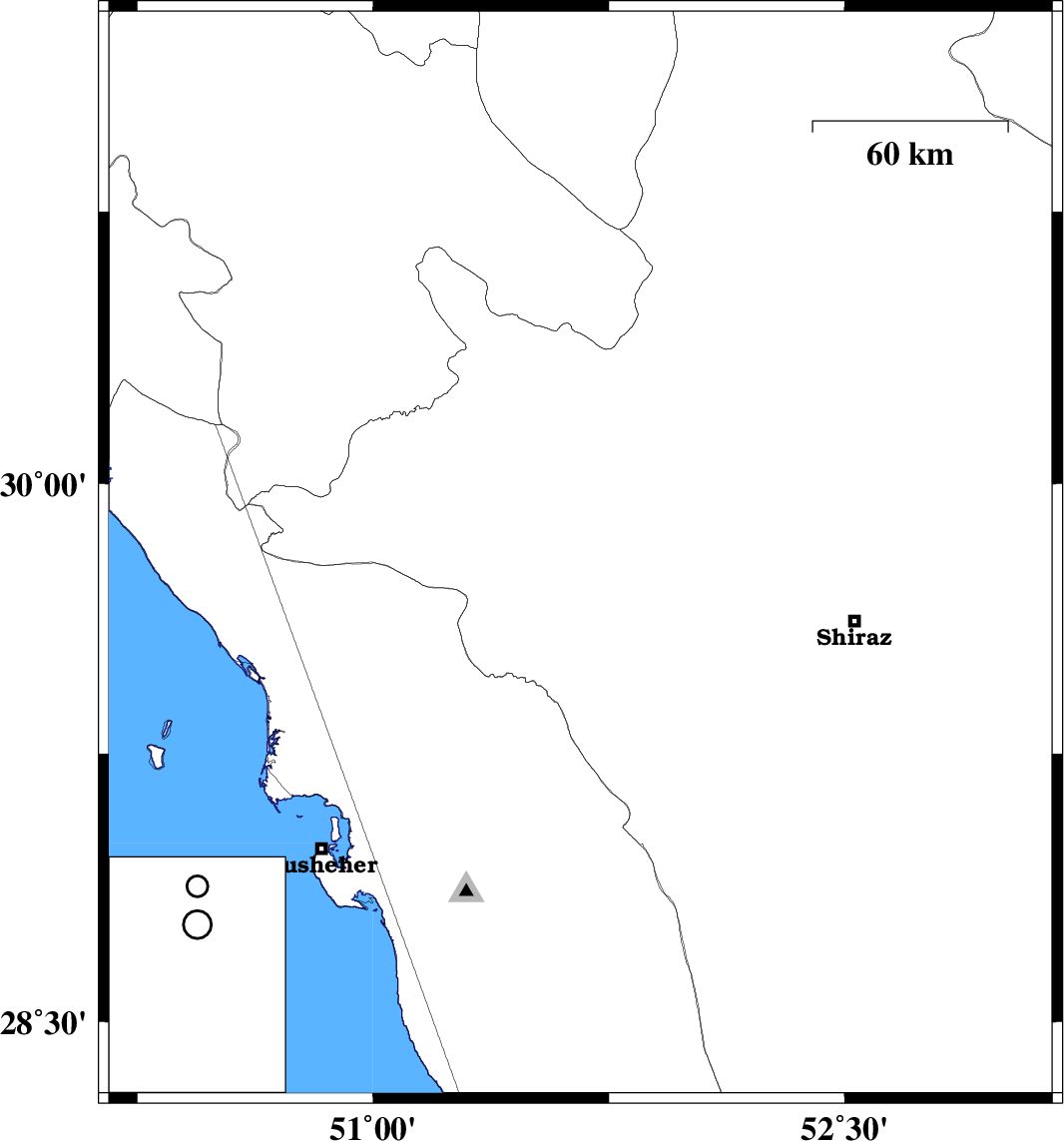 | 2019/11/13 | 11:28:42.2 | 14:58:42.2 | 29.8 | 51.66 | 10 | ML4.2 | Fars Province, 20 km North of Kazerun |