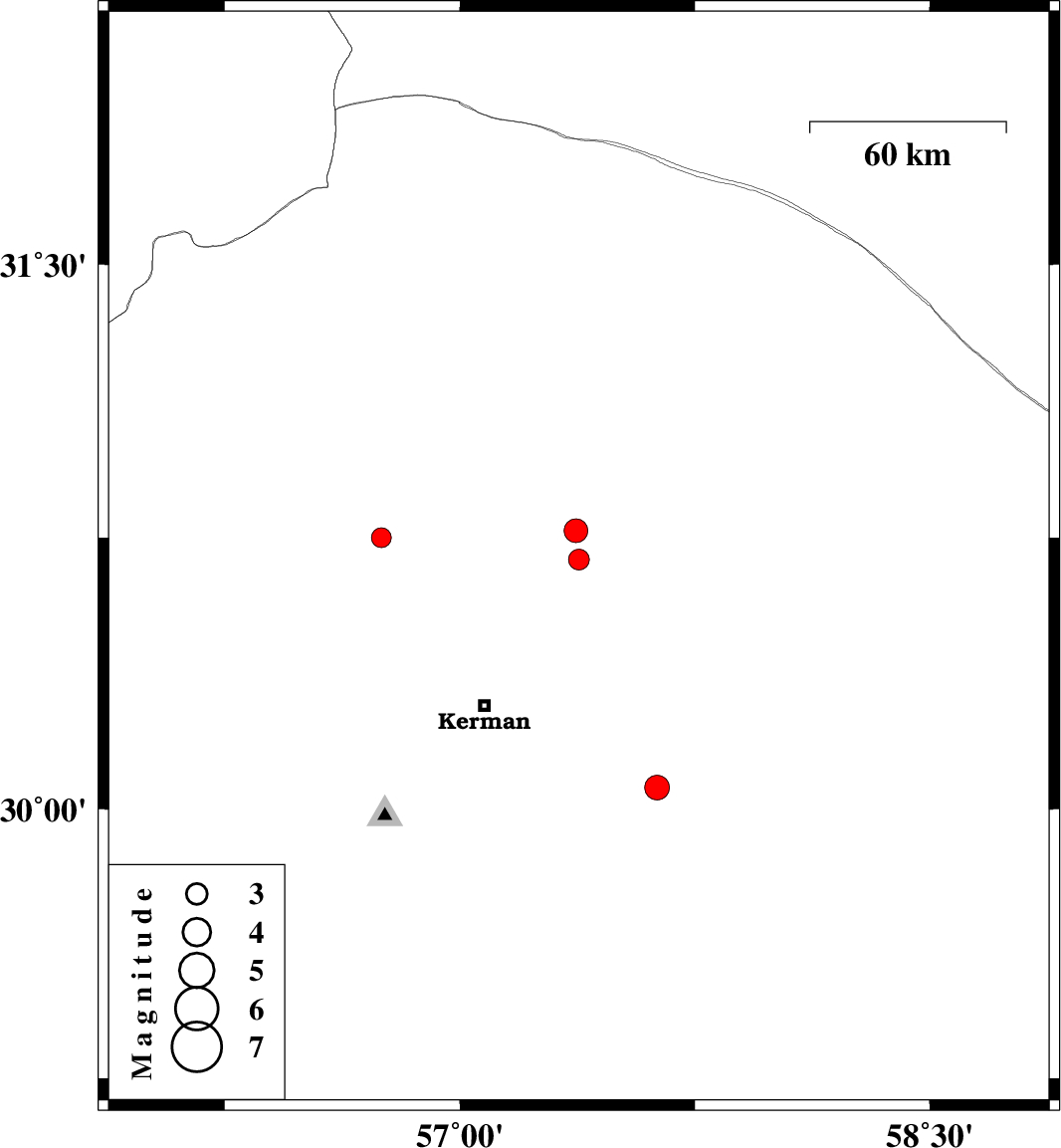 | 2019/10/28 | 11:06:15.8 | 14:36:15.8 | 30.06 | 57.63 | 14 | ML3.5 | Kerman Province, 59 km South-East of Kerman | ||