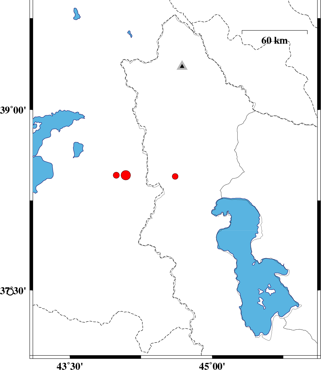 | 2019/11/19 | 00:14:14.9 | 03:44:14.9 | 38.45 | 44.61 | 10 | ML4.5 | Azarbaijan Gharbi Province, 32 km North-West of Salmas | ||