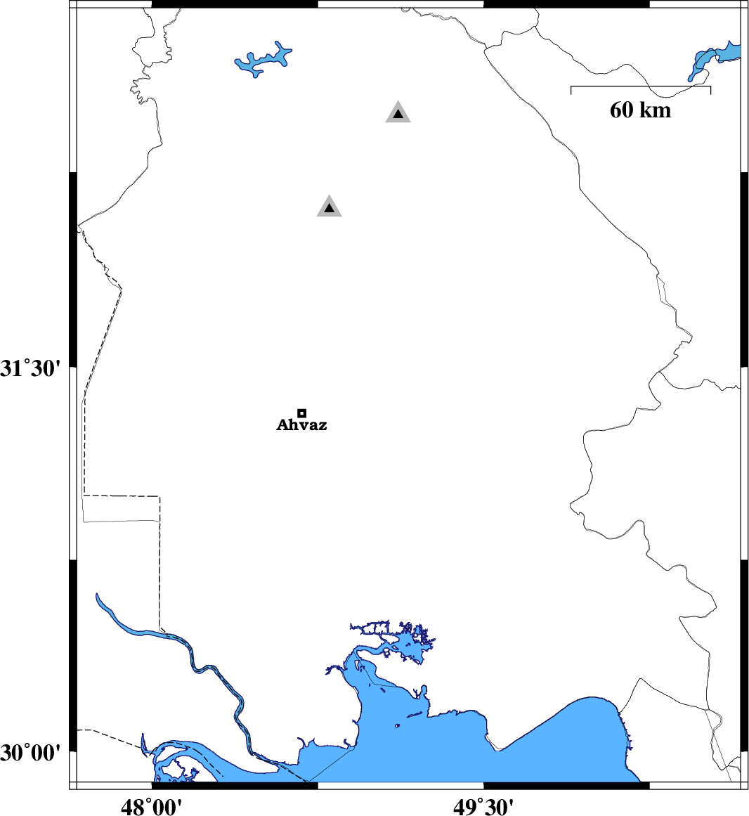 | 2019/11/22 | 08:45:46.5 | 12:15:46.5 | 31.38 | 49.16 | 11 | ML3.4 | Khoozestan Province, 46 km -East of Ahvaz |