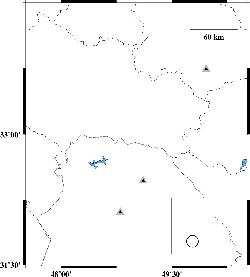 | 2019/11/22 | 19:42:42.9 | 23:12:42.9 | 32.99 | 49.02 | 10 | ML3.2 | Lorestan Province, 55 km South of Dorud |