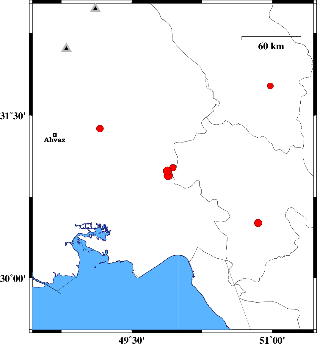 2019/11/23 13:45:32.9 17:15:32.9 30.9949.8812 ML3.9 Khoozestan Province, 30 km North-East of Omidiyeh