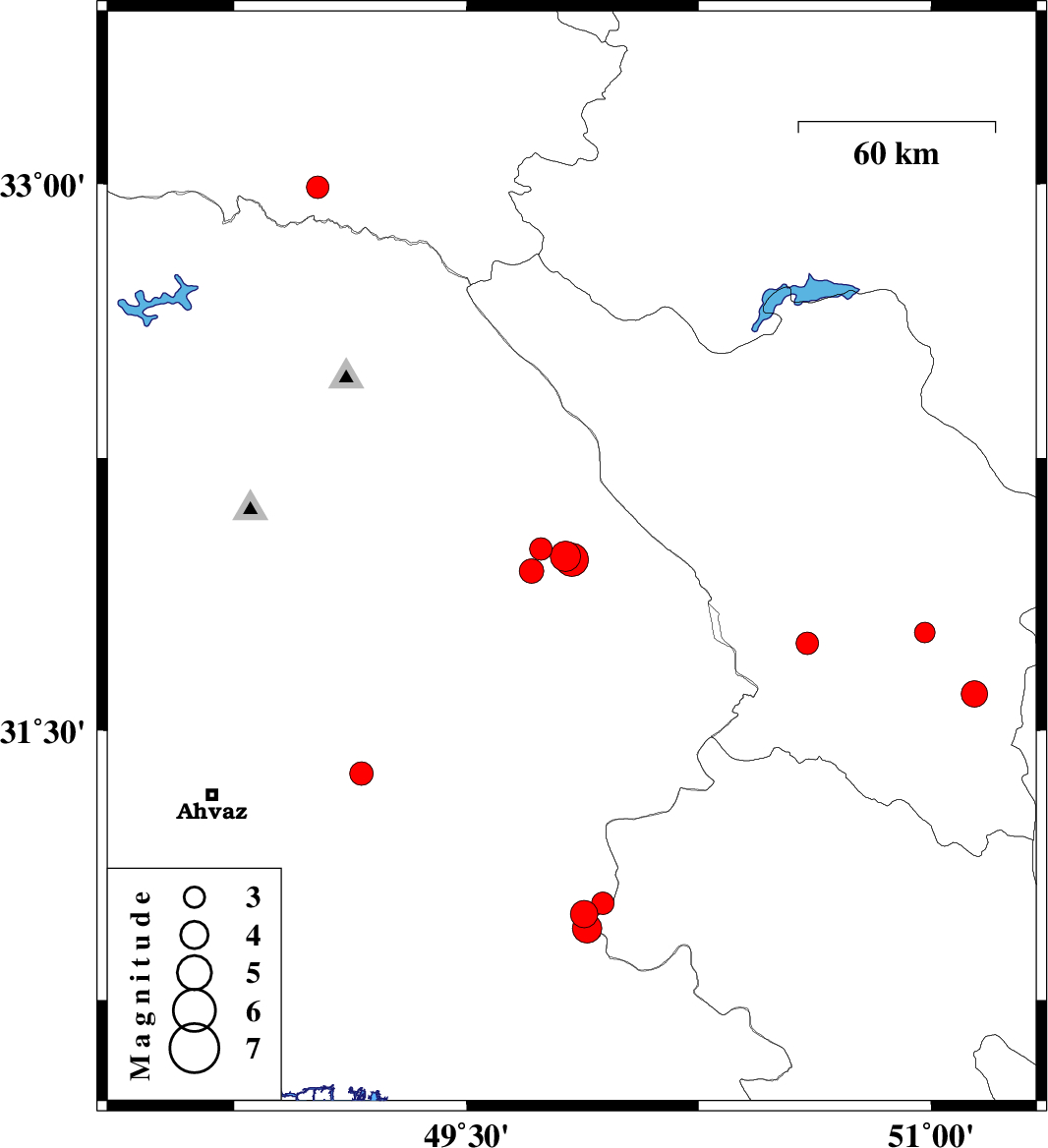 2019/11/23 13:45:32.9 17:15:32.9 30.9949.8812 ML3.9 Khoozestan Province, 30 km North-East of Omidiyeh