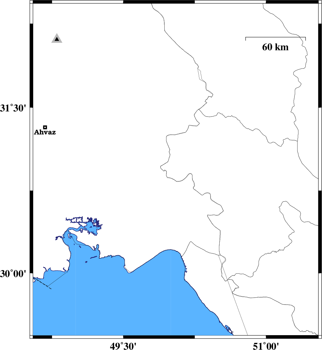 Map Region : lat:29.43-32.43  lon:48.55-51.55