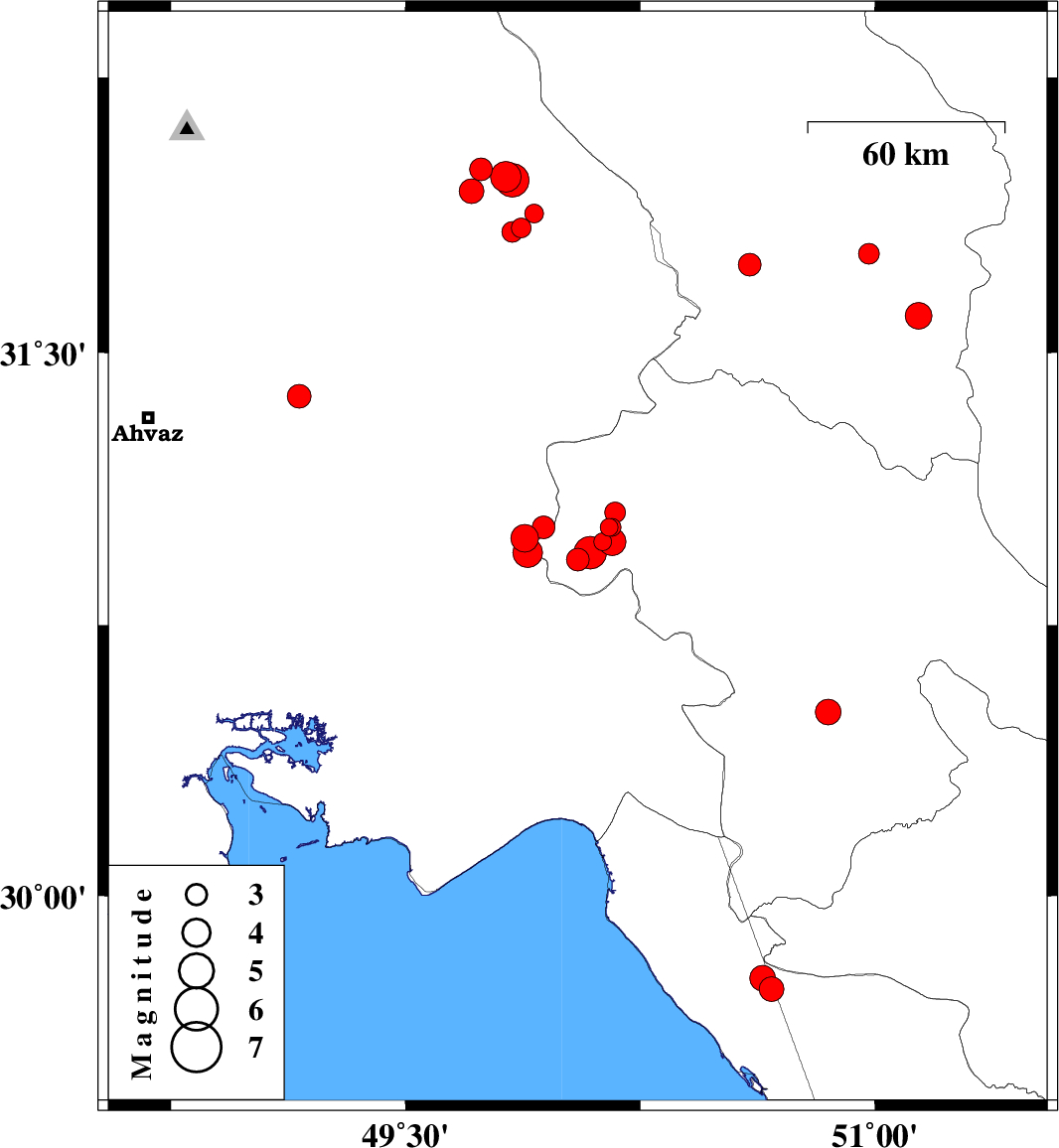 2019/11/23 13:45:32.9 17:15:32.9 30.9949.8812 ML3.9 Khoozestan Province, 30 km North-East of Omidiyeh