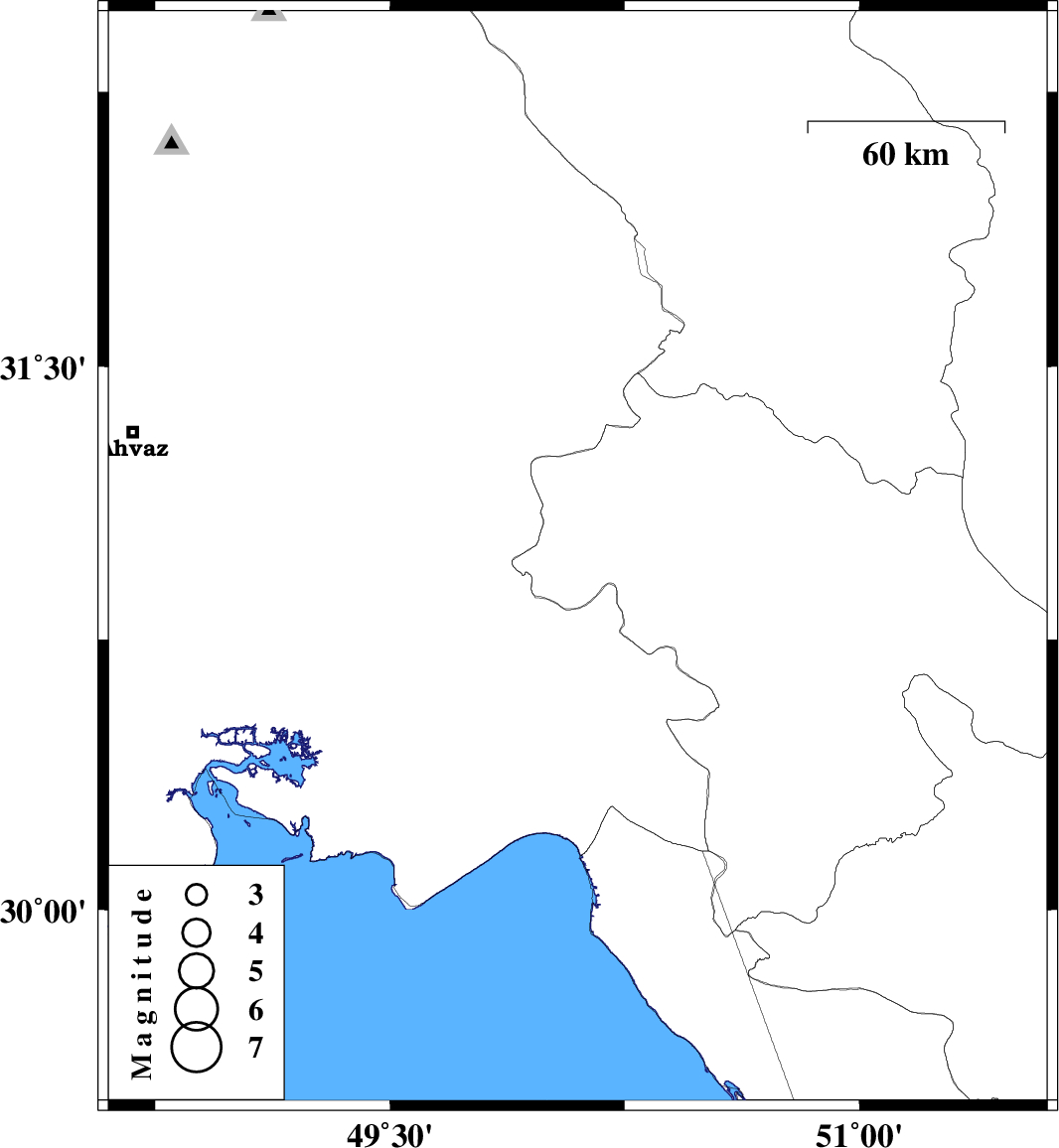 | 2019/12/18 | 23:37:37.1 | 03:07:37.1 | 30.97 | 50.1 | 10 | ML3.5 | Kohkiluieh va boyerahmad Province, 44 km North-West of Behbahan |
