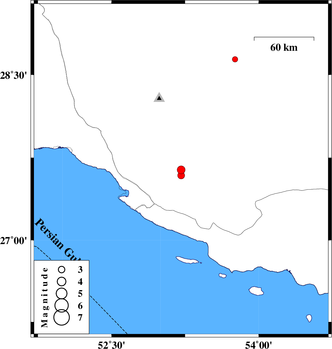 2019/12/22 17:25:21.5 20:55:21.5 27.6453.2110 ML3.7 Fars Province, 34 km North of Lamerd