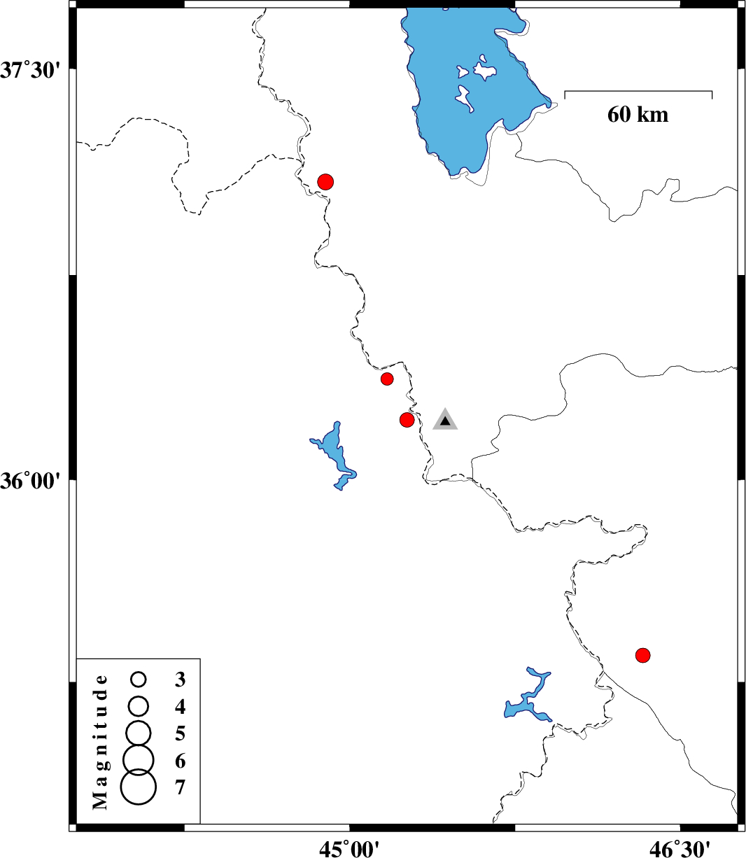 | 2019/12/13 | 08:36:09.6 | 12:06:09.6 | 37.09 | 44.89 | 10 | ML3.2 | Azarbaijan Gharbi Province, 18 km -West of Oshnaviyeh | ||