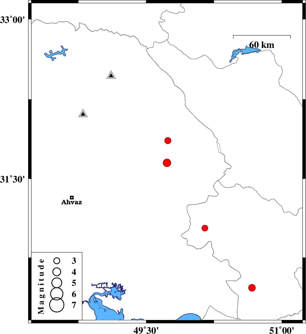 | 2020/01/07 | 11:39:46.9 | 15:09:46.9 | 31.86 | 49.74 | 12 | ML3.2 | Khoozestan Province, 13 km -West of Izeh |