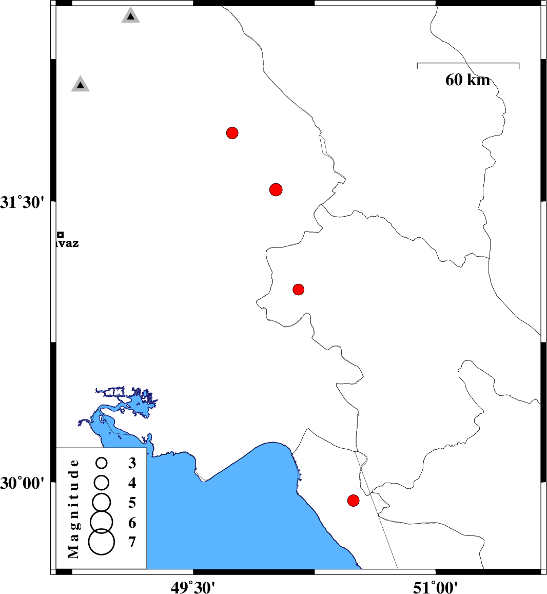 | 2020/01/07 | 11:39:46.9 | 15:09:46.9 | 31.86 | 49.74 | 12 | ML3.2 | Khoozestan Province, 13 km -West of Izeh | ||