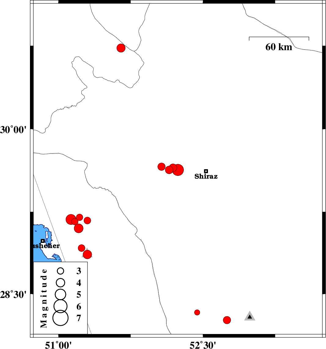 2020/01/27 13:28:27.1 16:58:27.1 29.6352.2410 ML5.4 Fars Province, 28 km -West of Shiraz