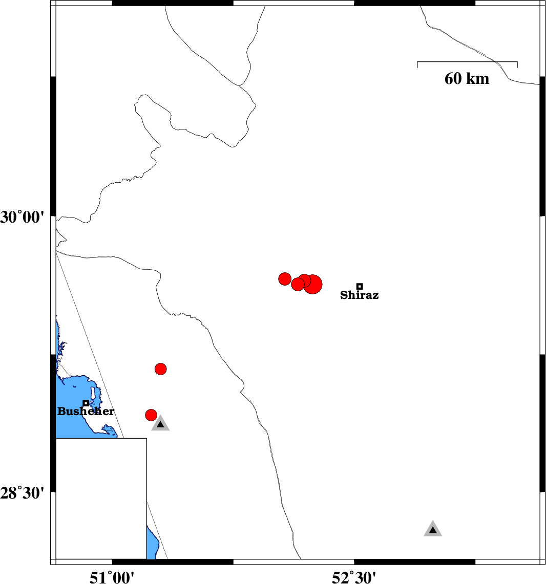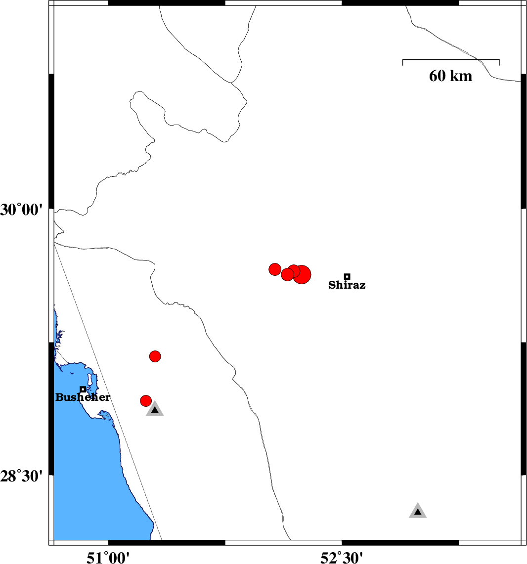 2020/01/27 13:28:27.1 16:58:27.1 29.6352.2410 ML5.4 Fars Province, 28 km -West of Shiraz