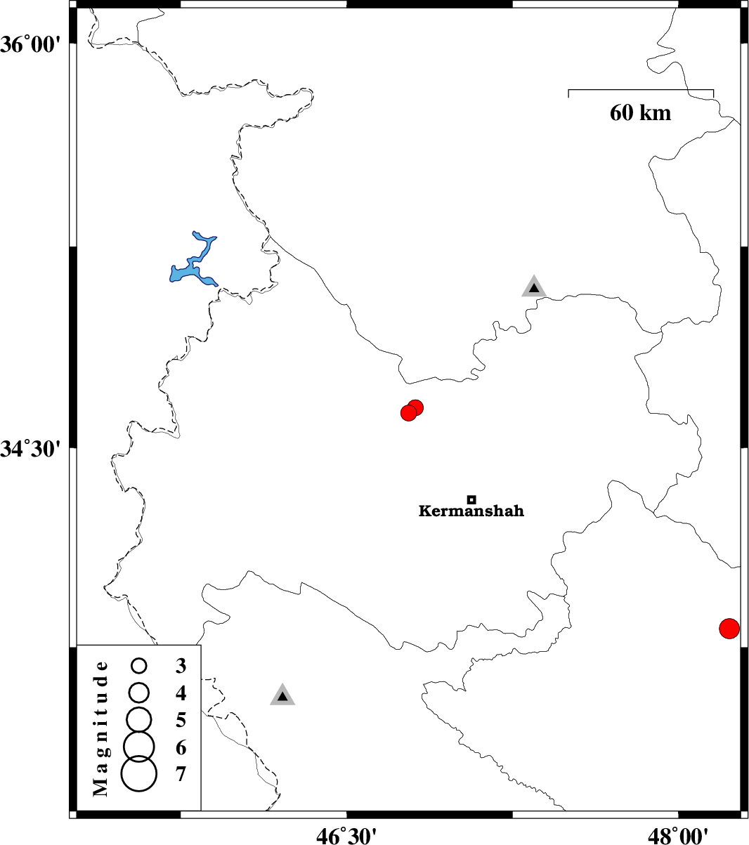 | 2020/02/15 | 18:25:41.0 | 21:55:41.0 | 34.63 | 46.78 | 16 | ML3.3 | Kermanshah Province, 26 km South-West of Kamyaran | ||
