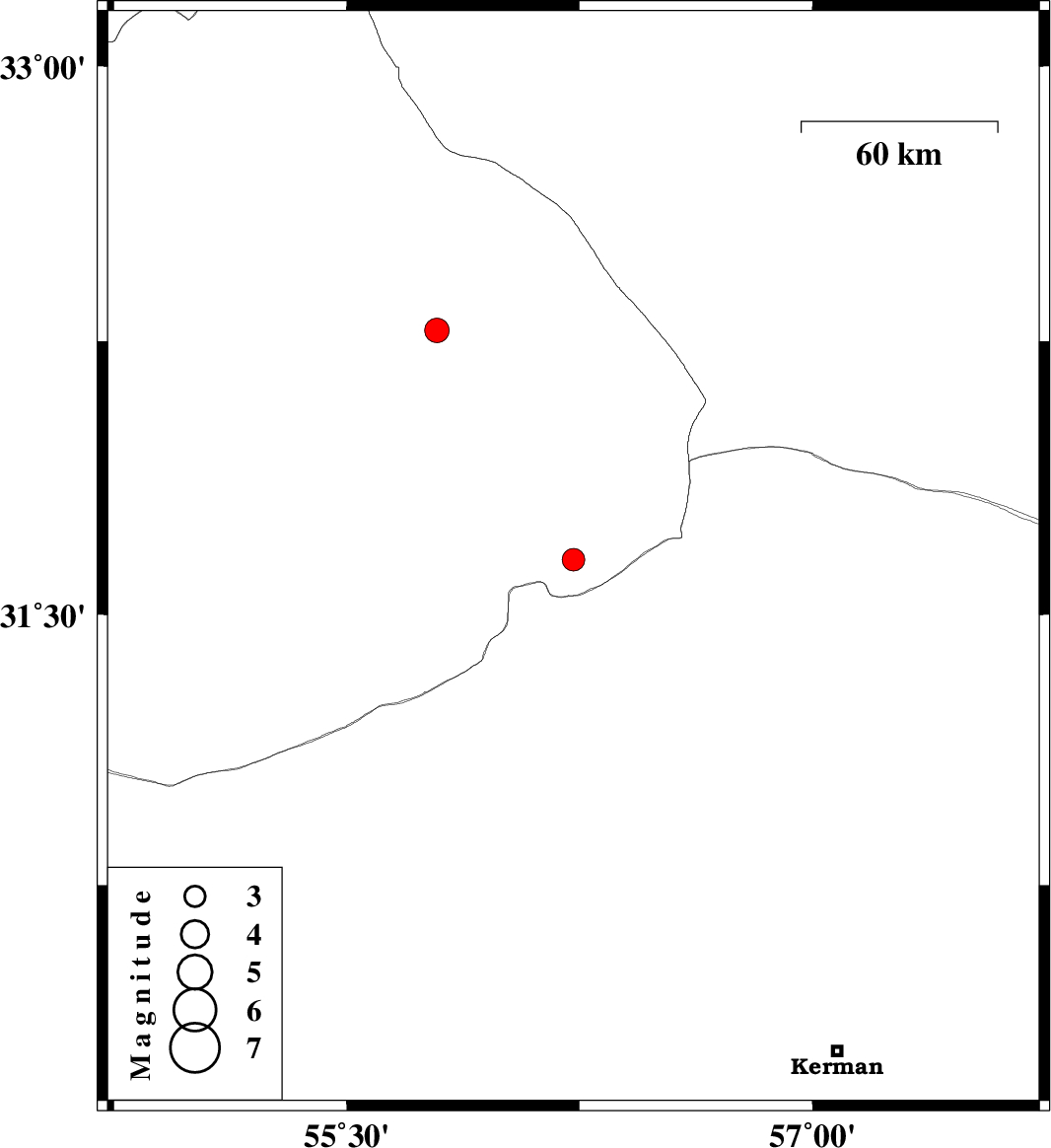 | 2020/02/28 | 18:46:44.9 | 22:16:44.9 | 31.65 | 56.23 | 10 | ML3.2 | Yazd Province, 79 km -East of Bafq | ||