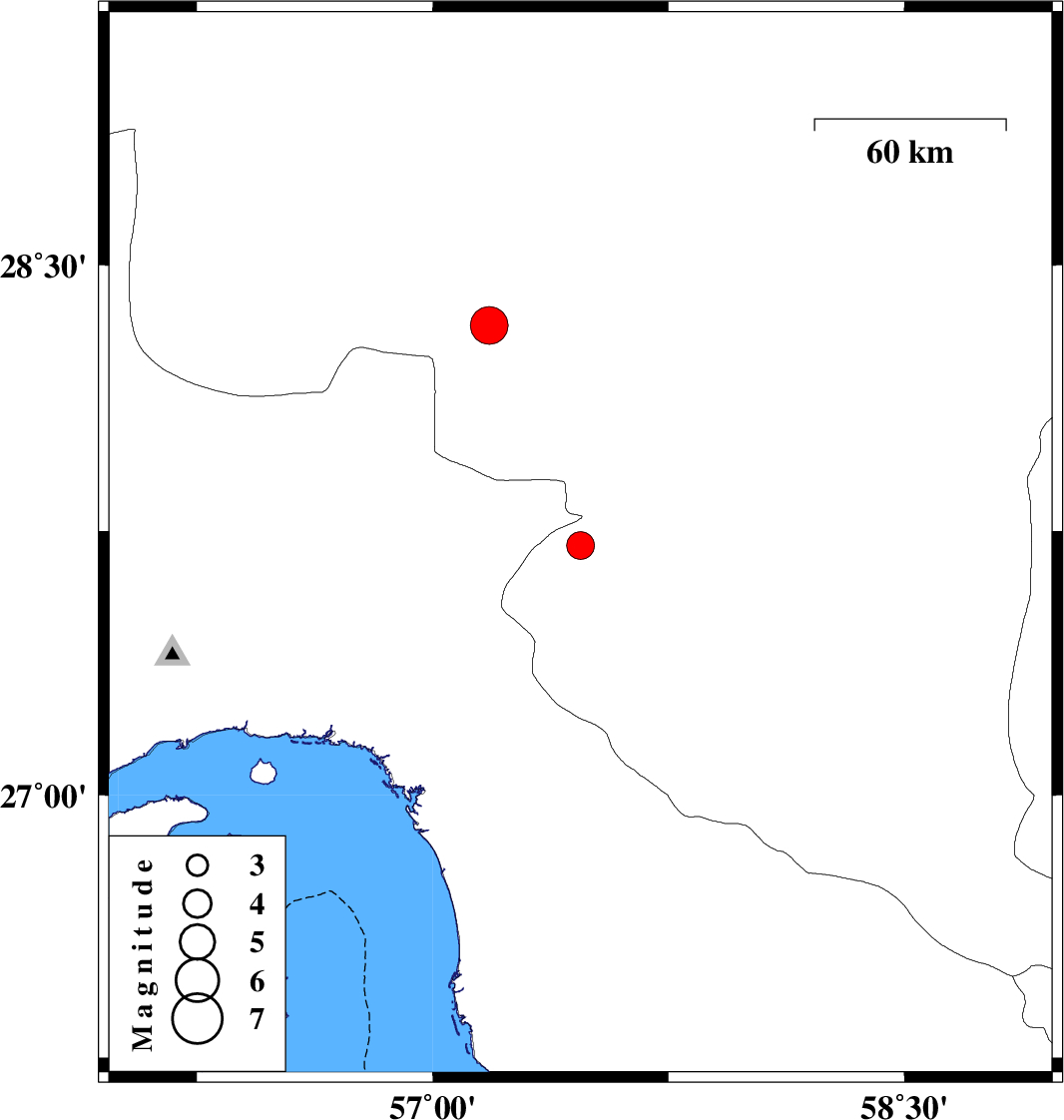 | 2020/03/27 | 06:40:44.6 | 11:10:44.6 | 28.33 | 57.18 | 15 | ML5.3 | Kerman Province, 66 km North-West of Kahnuj |