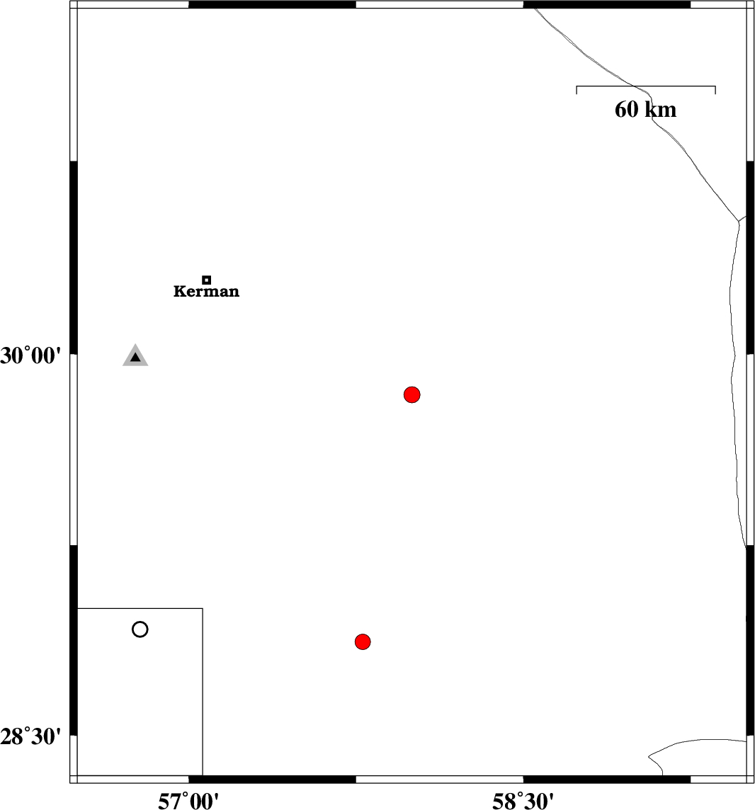 | 2020/06/06 | 20:00:33.6 | 00:30:33.6 | 28.87 | 57.78 | 10 | ML3.1 | Kerman Province, 23 km North of Jiroft |