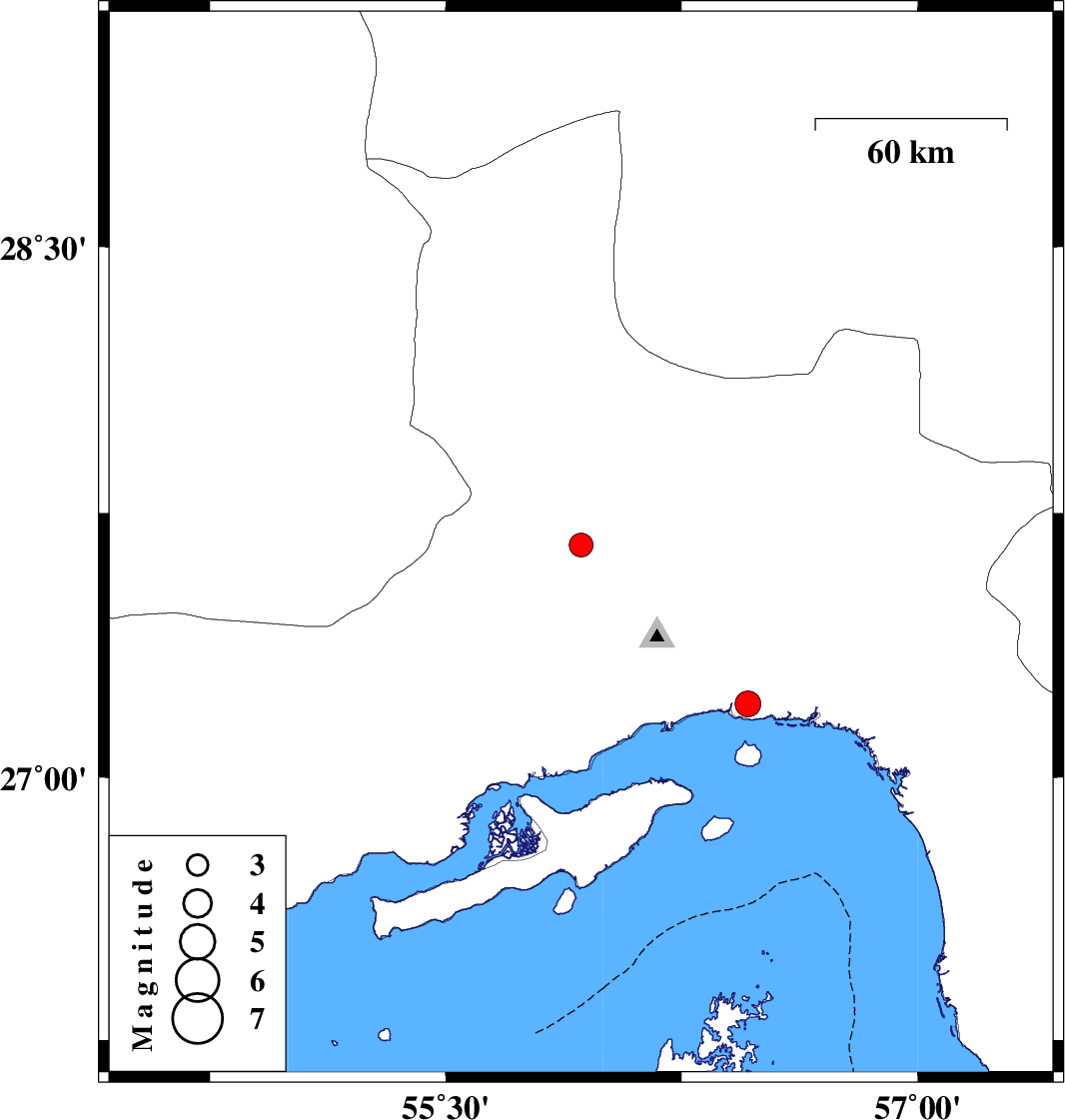 2020/06/21 21:46:04.3 02:16:04.3 27.2156.4610 ML3.7 Hormozgan Province, 18 km -East of Bandar-e abbas