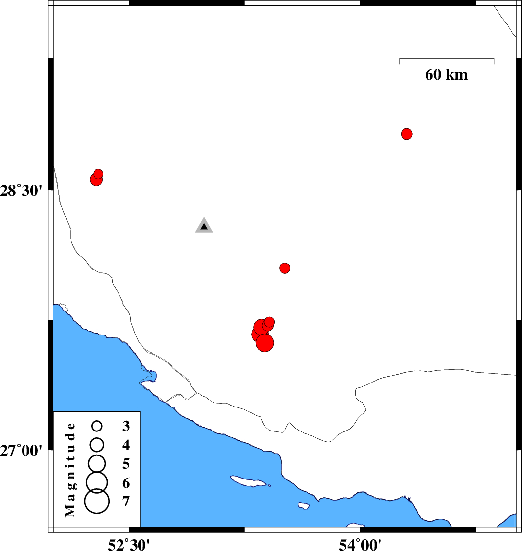 2020/06/20 16:57:14.5 21:27:14.5 28.0553.5110 ML3.1 Fars Province, 50 km South of Jahrom