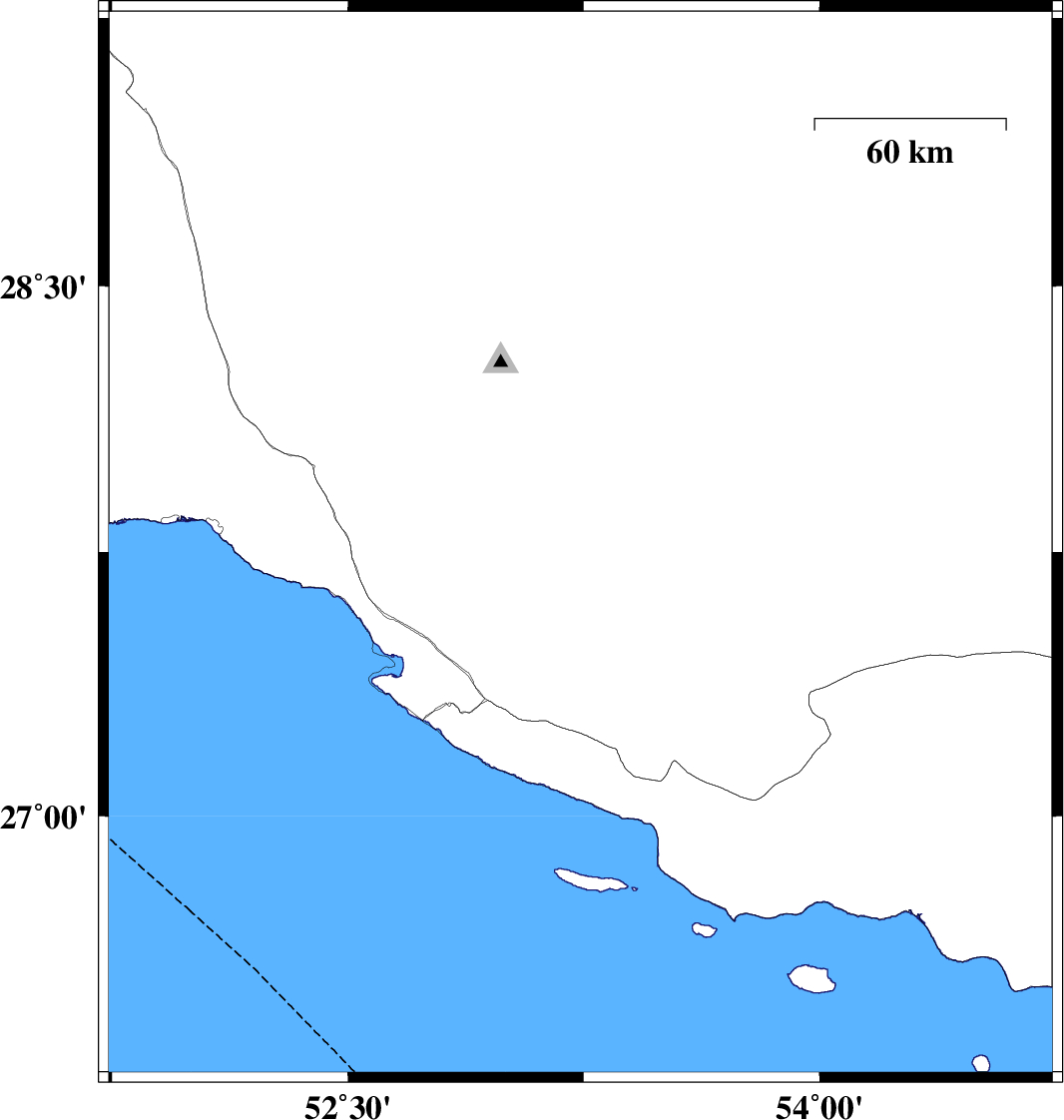 | 2020/06/21 | 08:05:47.2 | 12:35:47.2 | 28.1 | 53.58 | 15 | ML3.7 | Fars Province, 45 km South of Jahrom |