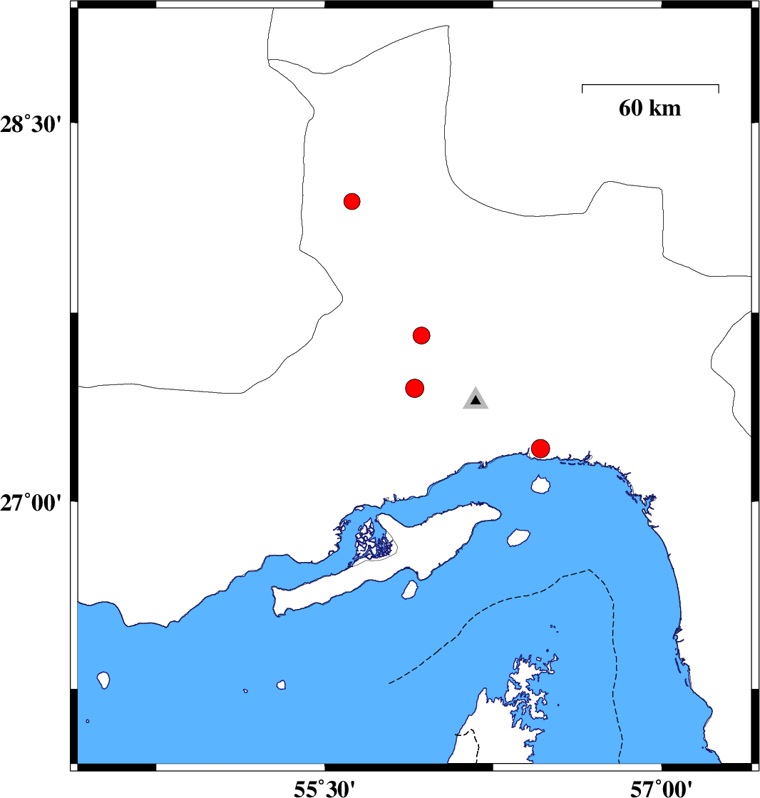 2020/06/21 00:12:37.6 04:42:37.6 27.6655.9320 ML3.4 Hormozgan Province, 72 km South of Hajiabad