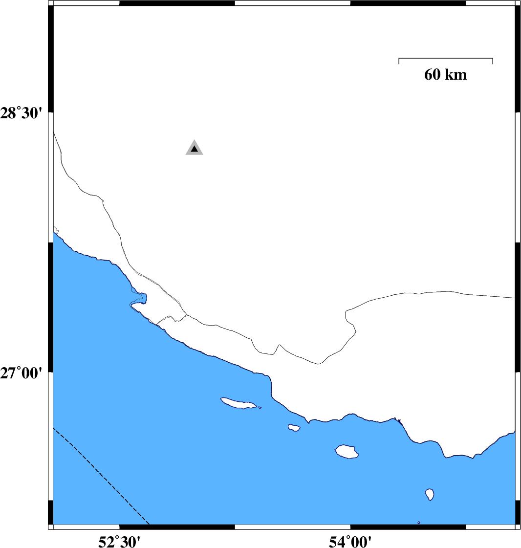 2020/06/28 23:05:33.5 03:35:33.5 27.7753.2410 ML3.1 Fars Province, 49 km North of Lamerd