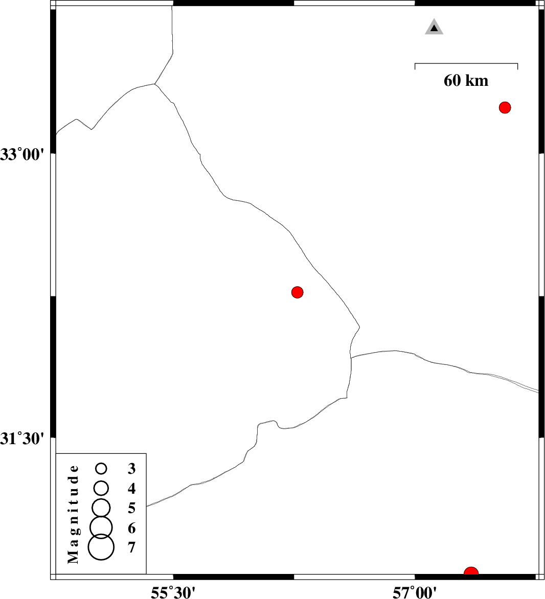 | 2020/06/27 | 07:48:03.3 | 12:18:03.3 | 30.77 | 57.35 | 10 | ML4.1 | Kerman Province, 60 km North-East of Kerman |