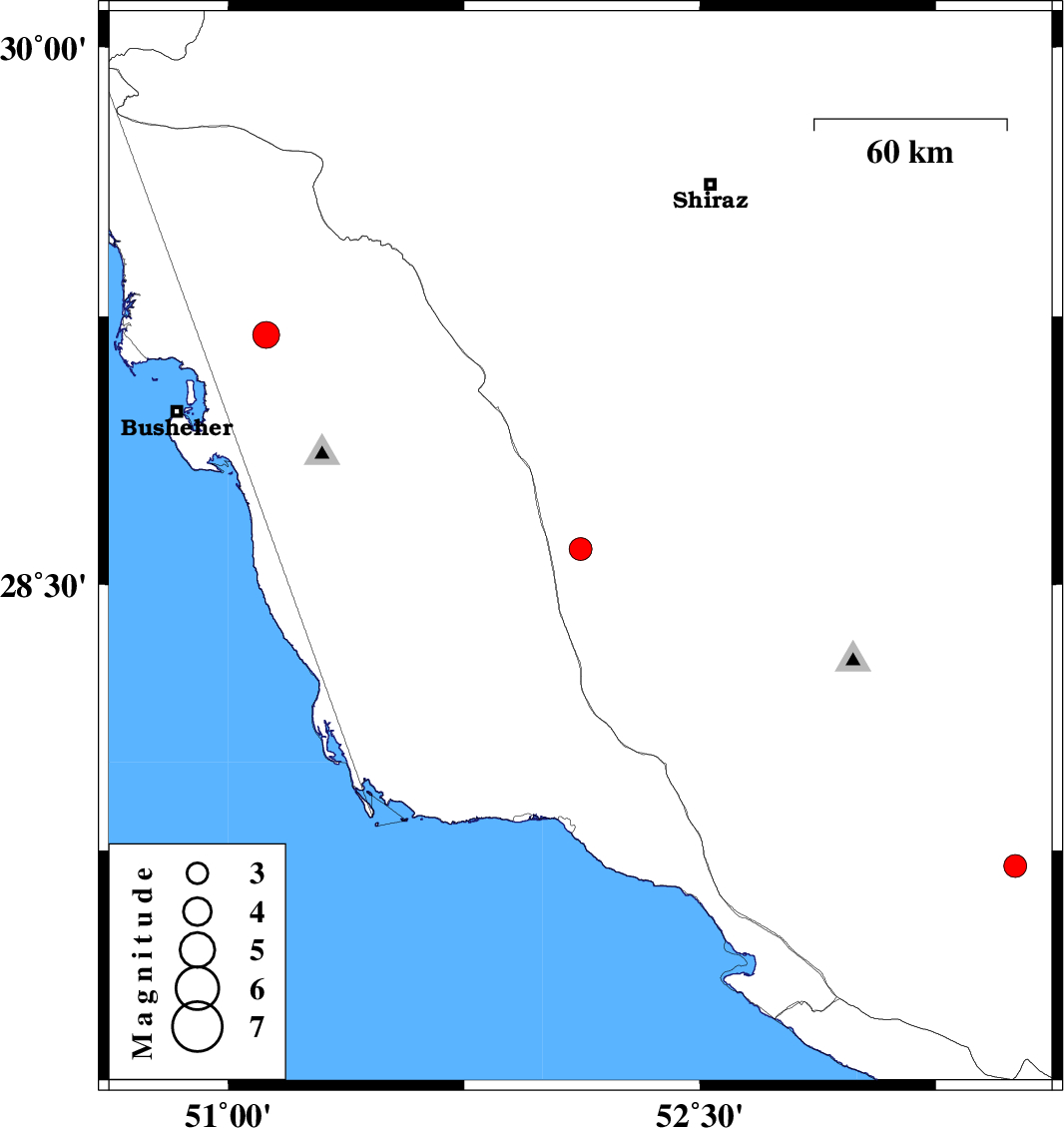 | 2020/07/13 | 05:18:03.4 | 09:48:03.4 | 29.199 | 51.12 | 12 | ML3.8 | Bushehr Province, 11 km of Borazjan | ||