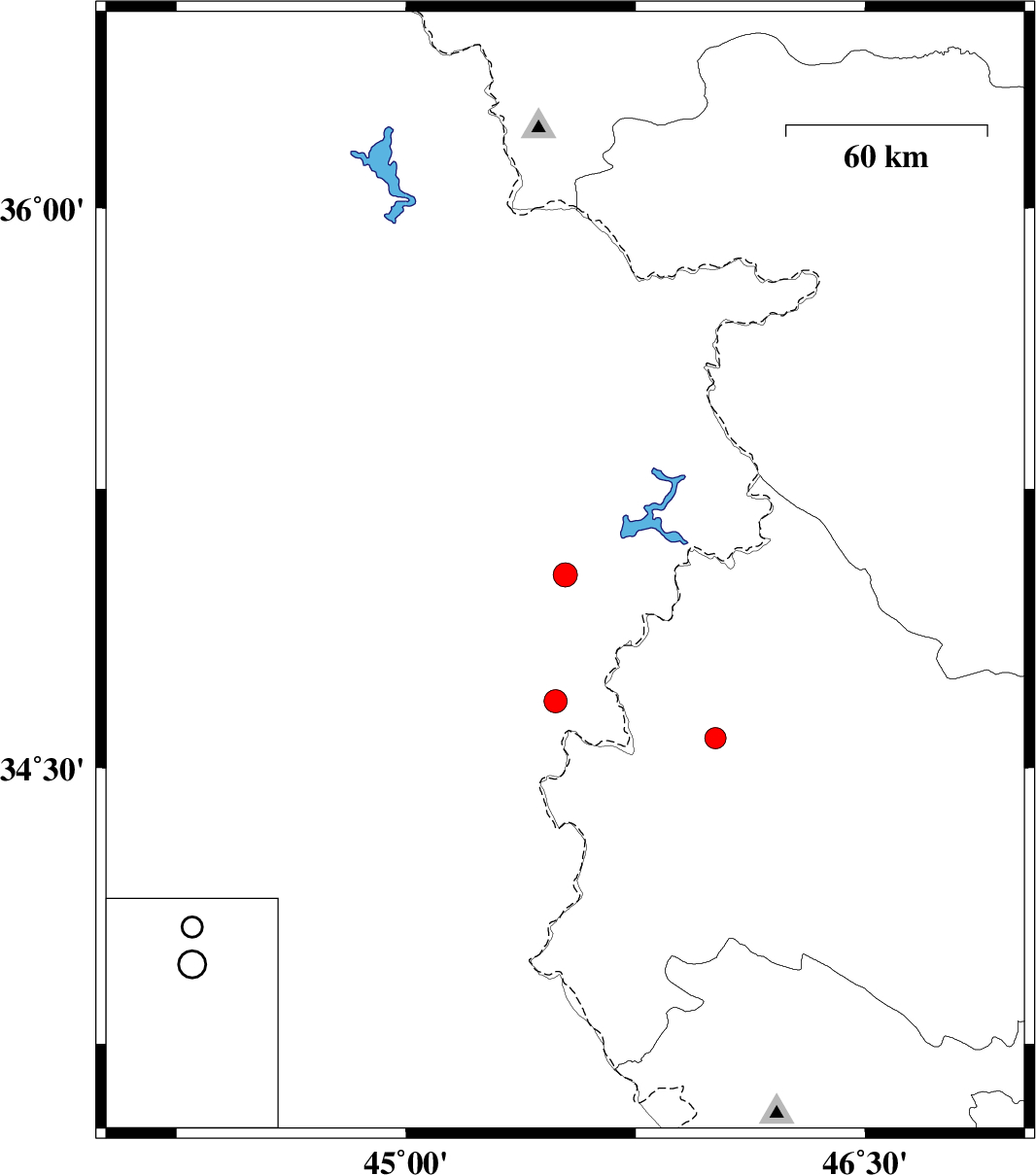 | 2020/07/17 | 12:28:02.5 | 16:58:02.5 | 34.58 | 46.01 | 10 | ML3.1 | Kermanshah Province, 17 km North-East of Sar-e pol-e zahab | ||