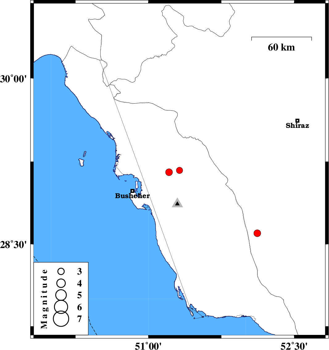 | 2020/07/25 | 11:44:24.6 | 16:14:24.6 | 29.17 | 51.32 | 21 | ML3 | Bushehr Province, 15 km -East of Borazjan | ||