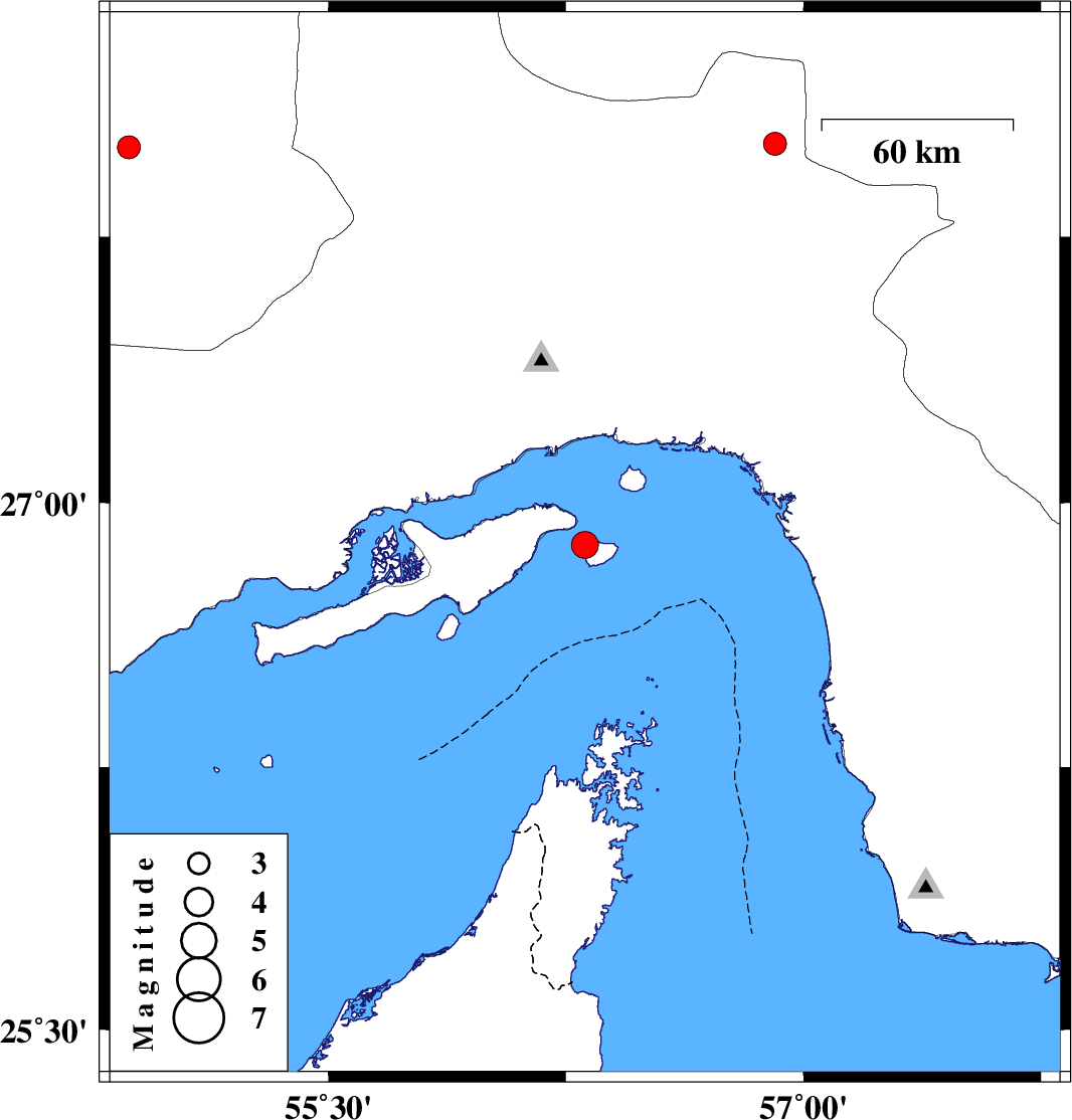 | 2020/07/25 | 17:47:18.3 | 22:17:18.3 | 26.88 | 56.31 | 10 | ML3.8 | Persian Gulf, 10 km of Qeshm | ||
