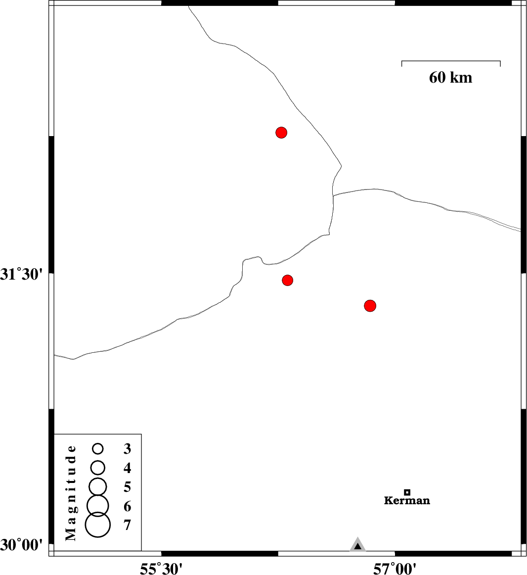 | 2020/07/19 | 01:15:27.5 | 05:45:27.5 | 32.27 | 56.27 | 24 | ML3.2 | Yazd Province, 111 km North-East of Bafq |