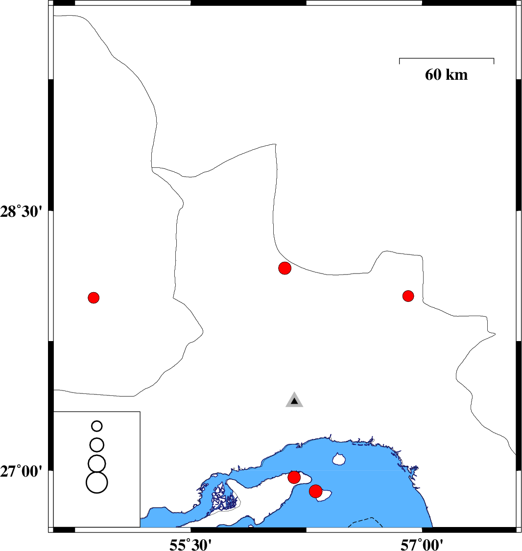 | 2020/07/19 | 11:40:32.9 | 16:10:32.9 | 28 | 54.87 | 10 | ML3.3 | Fars Province, 63 km North-East of Lar |