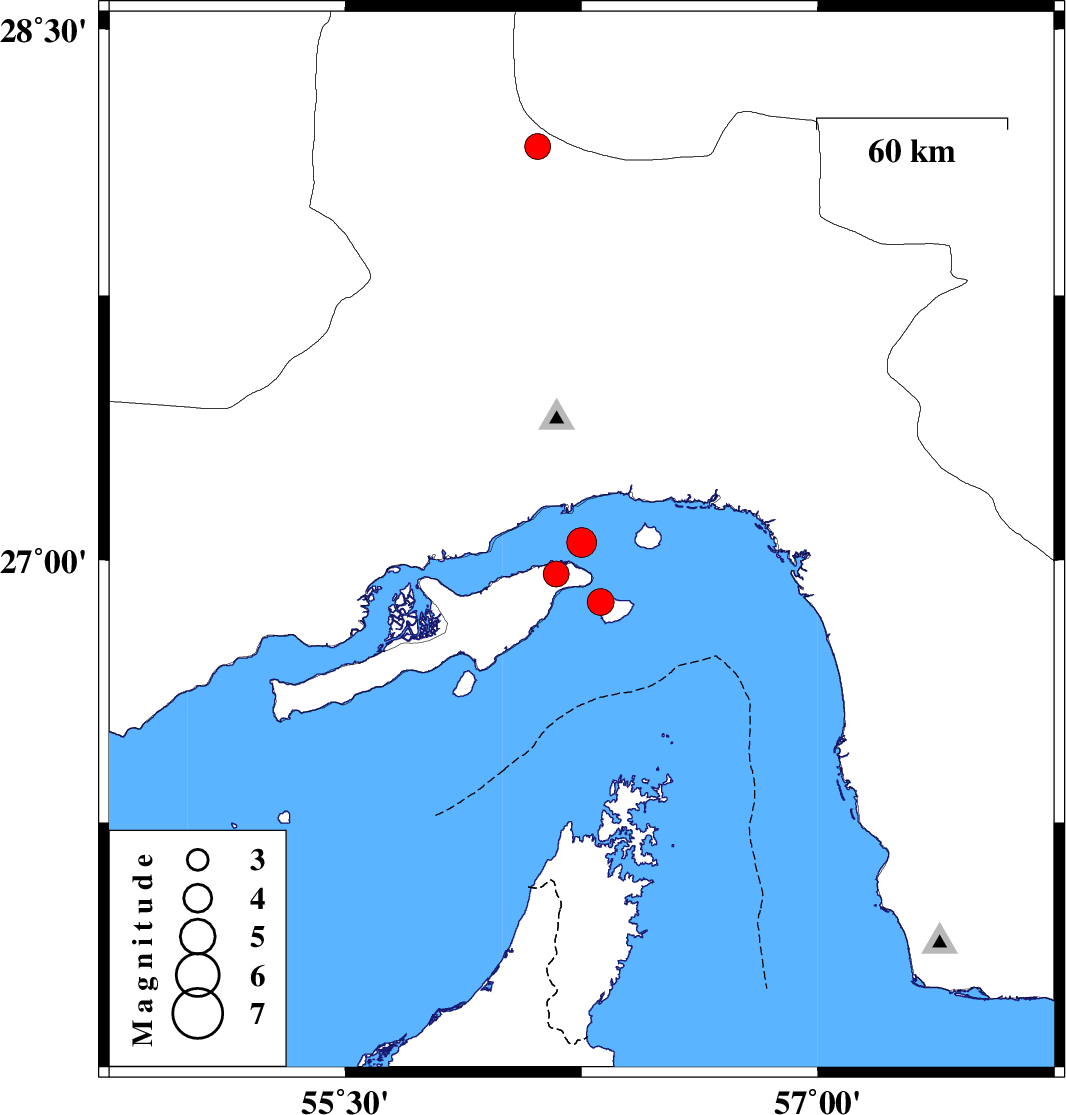 | 2020/07/27 | 11:12:37.5 | 15:42:37.5 | 27.05 | 56.25 | 18 | ML4.3 | Persian Gulf, 11 km of Qeshm | ||