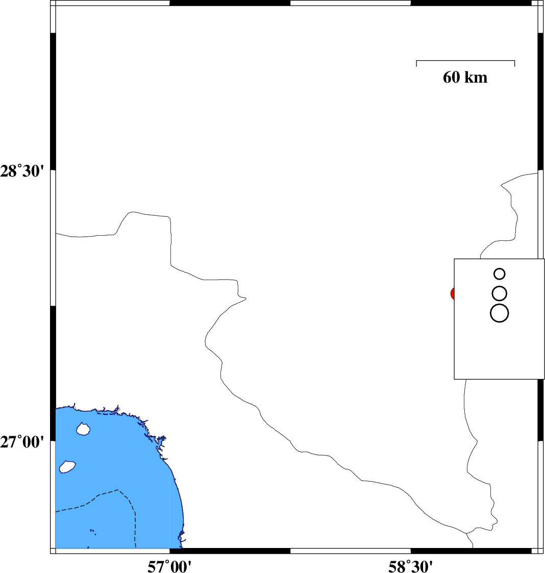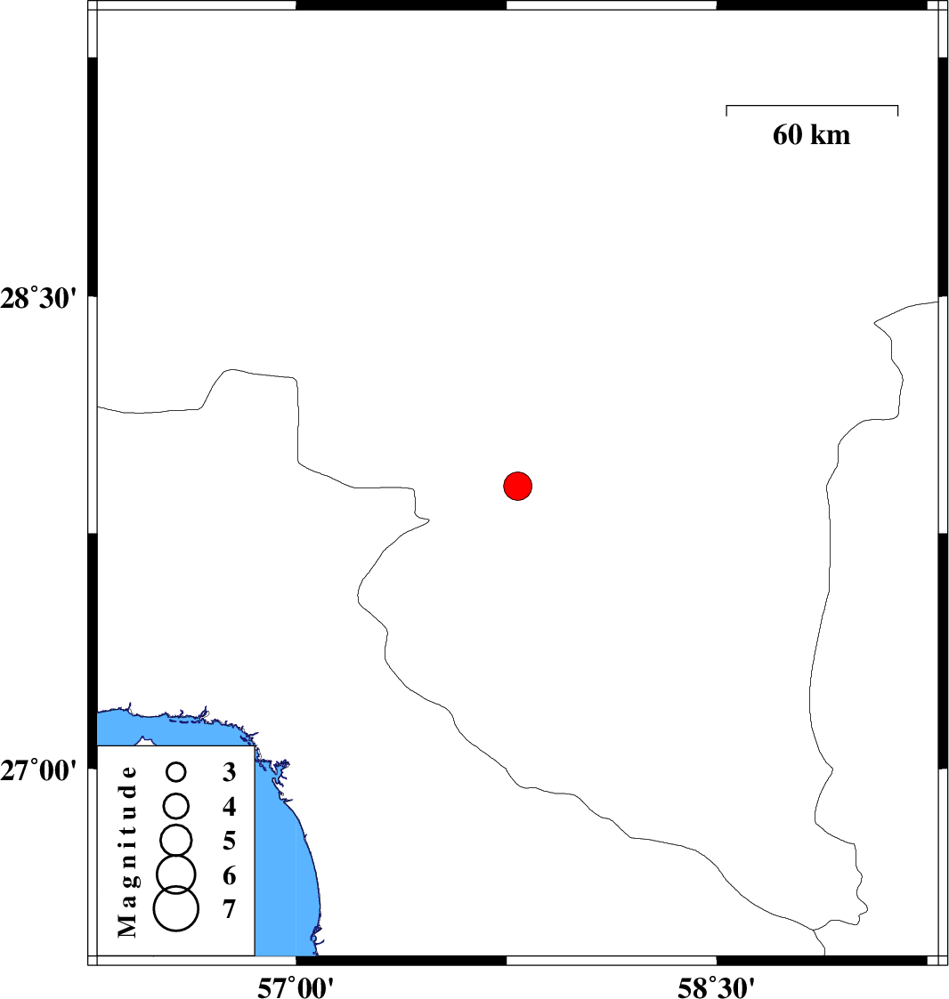 | 2020/08/01 | 02:24:50.1 | 06:54:50.1 | 27.9 | 57.79 | 10 | ML4.5 | Kerman Province, 11 km of Kahnuj | ||