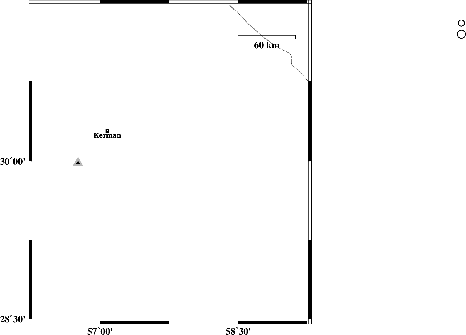 | 2020/09/02 | 04:27:17.8 | 08:57:17.8 | 30.262 | 57.698 | 12 | ML3.2 | Kerman Province, 60 km -East of Kerman |