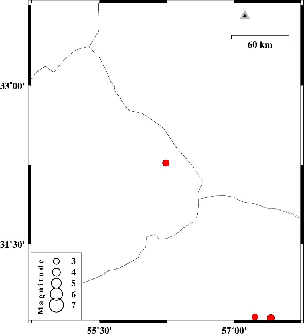 2020/09/19 09:23:13.5 13:53:13.5 30.857.2310 ML3.2 Kerman Province, 59 km North-East of Kerman